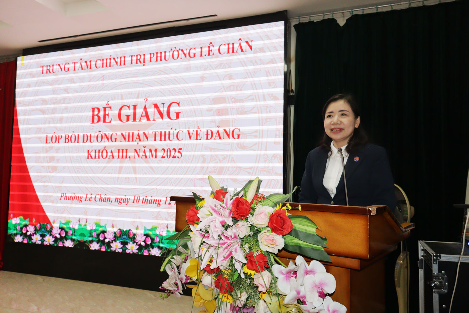 (Haiphong.gov.vn) - Chiều 10/12, Trung tâm Chính trị phường Lê Chân tổ chức Lễ bế giảng lớp bồi dưỡng nhận thức về Đảng khóa III năm 2025.
