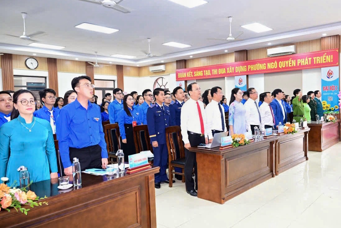 Đại biểu dự Đại hội thực hiện nghi lễ chào cờ.Với khẩu hiệu hành động “Tiên phong – Đoàn kết – Bản lĩnh – Đột phá – Phát triển”, Đại hội là dịp để tuổi trẻ phường Ngô Quyền cùng nhìn lại kết quả công tác Đoàn giai đoạn 2022–2027, đề ra phương hướng, mục tiêu và giải pháp trong nhiệm kỳ mới; thể hiện tinh thần đoàn kết, khát vọng cống hiến và trách nhiệm của thanh niên đối với cộng đồng.