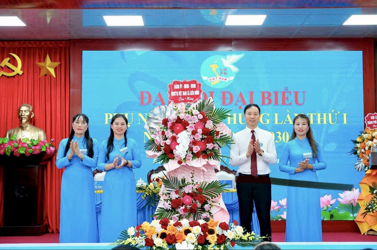 Lãnh đạo Hội LHPN thành phố và lãnh đạo xã tặng hoa chúc mừng Đại hội.Trong nhiệm kỳ 2021–2025, các cấp Hội phụ nữ trên địa bàn đã hoàn thành 100% chỉ tiêu Nghị quyết, trong đó có 05 chỉ tiêu vượt và về đích trước thời hạn. Phong trào thi đua “Xây dựng người phụ nữ Việt Nam thời đại mới”, cuộc vận động “Xây dựng gia đình 5 không, 3 sạch” được triển khai sâu rộng, gắn với thực hiện chuyển đổi số, phát triển kinh tế xanh và xây dựng nông thôn mới. Hội đã tín chấp trên 48 tỷ đồng cho hơn 1.200 hội viên vay vốn phát triển kinh tế, nhiều mô hình sản xuất, kinh doanh do phụ nữ làm chủ mang lại hiệu quả cao, tạo việc làm và thu nhập ổn định cho hàng trăm lao động địa phương.