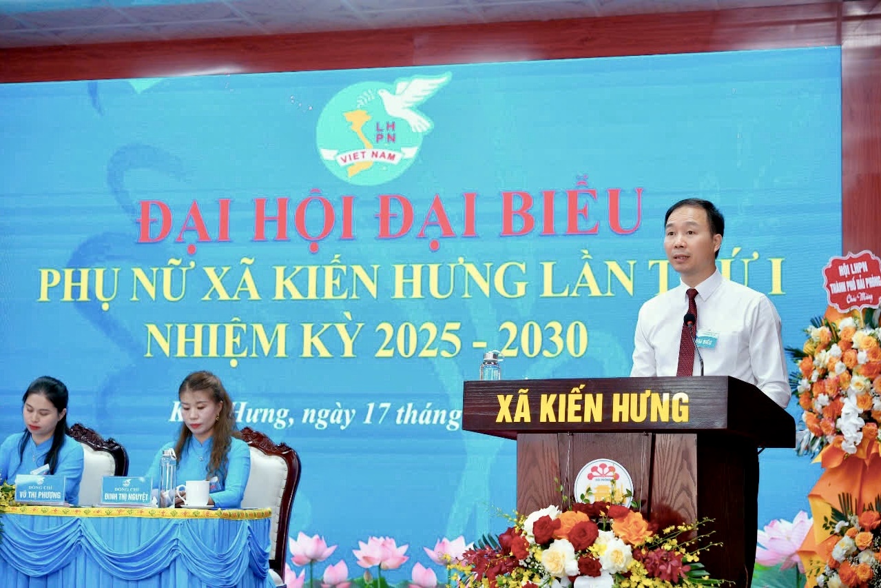 Đồng chí Vũ Thanh Sơn, Phó Bí thư Thường trực Đảng uỷ xã phát biểu chỉ đạo Đại hộiThành công của Đại hội là dấu mốc quan trọng, khẳng định tinh thần đoàn kết, khát vọng vươn lên của các tầng lớp phụ nữ xã Kiến Hưng trong thời kỳ mới, góp phần xây dựng xã Kiến Hưng phát triển toàn diện, văn minh, hiện đại.