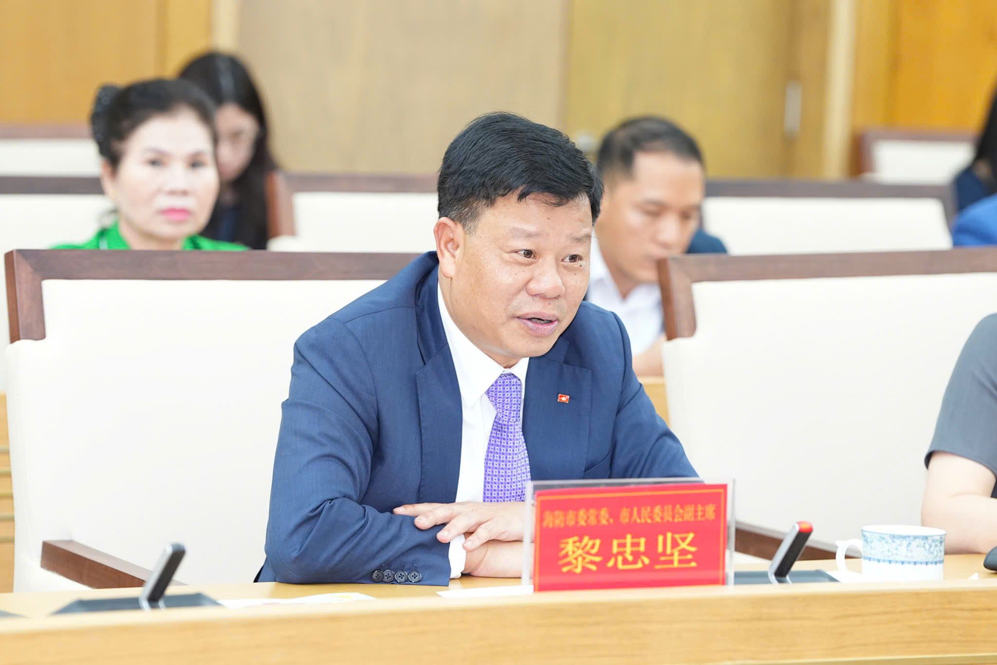 Toàn cảnh cuộc làm việc.Phát biểu tại cuộc làm việc, Phó Chủ tịch UBND thành phố Lê Trung Kiên bày tỏ vui mừng chào đón Đoàn công tác, đồng thời nhấn mạnh chuyến thăm diễn ra ngay sau chuyến công tác cấp nhà nước thành công tốt đẹp của Tổng Bí thư, Chủ tịch nước Tô Lâm tại Trung Quốc. Đây là minh chứng sinh động cho quyết tâm của hai bên trong việc tích cực triển khai, cụ thể hóa các nội dung của Tuyên bố chung Việt Nam - Trung Quốc, hướng tới xây dựng Cộng đồng chia sẻ tương lai.