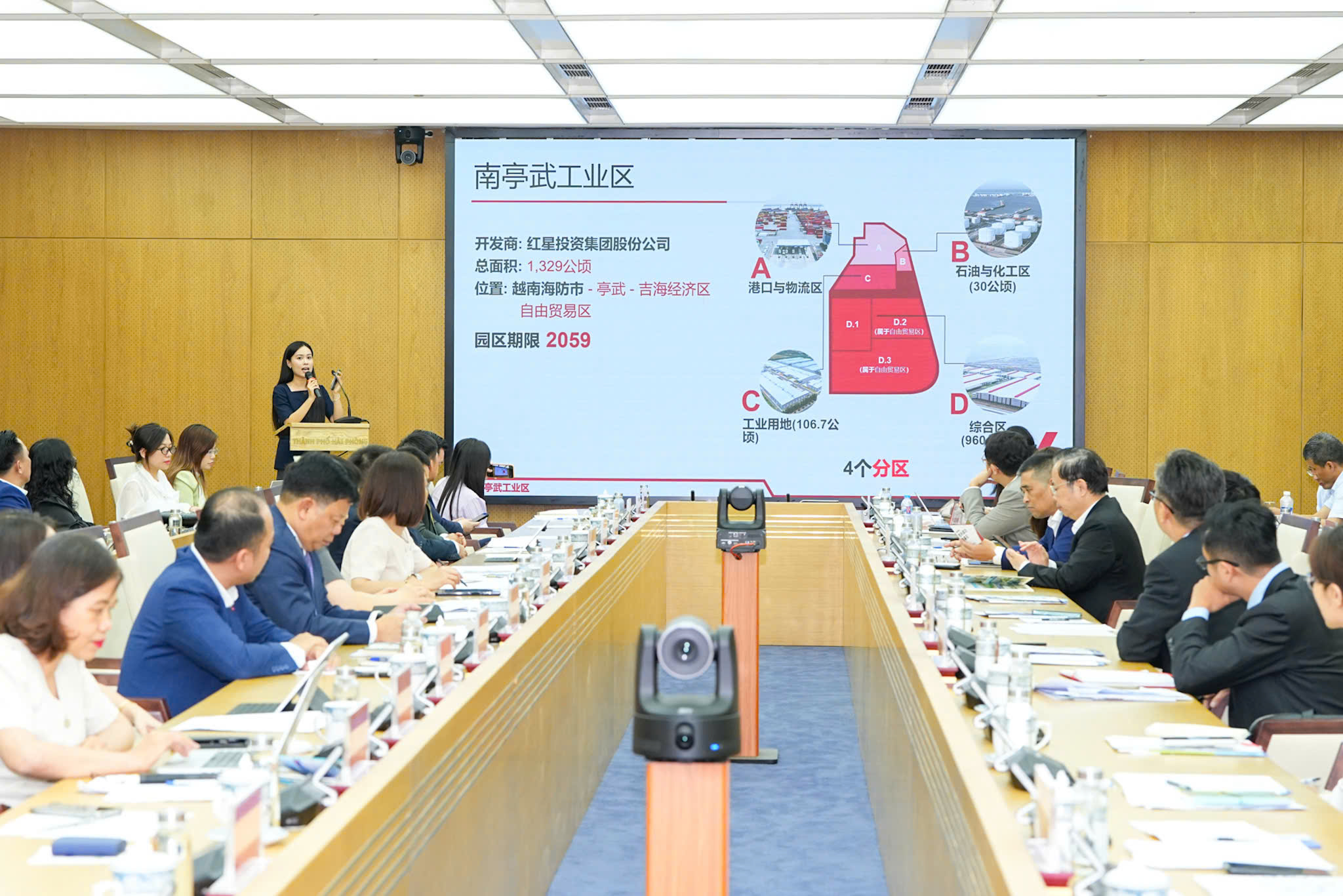 Đại diện một số Công ty kinh doanh hạ tầng đã giới thiệu thông tin chi tiết về tiềm năng, lợi thế và định hướng thu hút đầu tư tại các khu công nghiệp trên địa bàn thành phố. Cũng trong khuôn khổ cuộc làm việc, đại diện lãnh đạo Ban Quản lý Khu kinh tế Hải Phòng đã trình bày khái quát về các chính sách ưu đãi, thu hút đầu tư của thành phố. Cùng với đó, đại diện một số Công ty kinh doanh hạ tầng đã giới thiệu thông tin chi tiết về tiềm năng, lợi thế và định hướng thu hút đầu tư tại các khu công nghiệp trên địa bàn thành phố đến các doanh nghiệp thuộc Đoàn công tác.