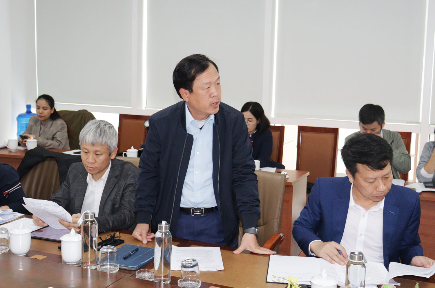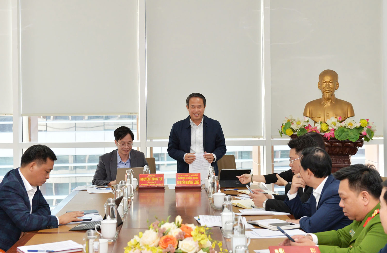 Giám đốc Sở Công thương báo cáo tại cuộc làm việc.Theo báo cáo của Sở Công thương, thực hiện Luật Quy hoạch năm 2017, Sở Công thương thành phố Hải Phòng (cũ) và Sở Công thương tỉnh Hải Dương (cũ) đã rà soát, điều chỉnh, xây dựng Phương án phát triển hạ tầng thương mại tích hợp trong Quy hoạch của tỉnh Hải Dương và Quy hoạch thành phố Hải Phòng, đã được Thủ tướng Chính phủ phê duyệt.
