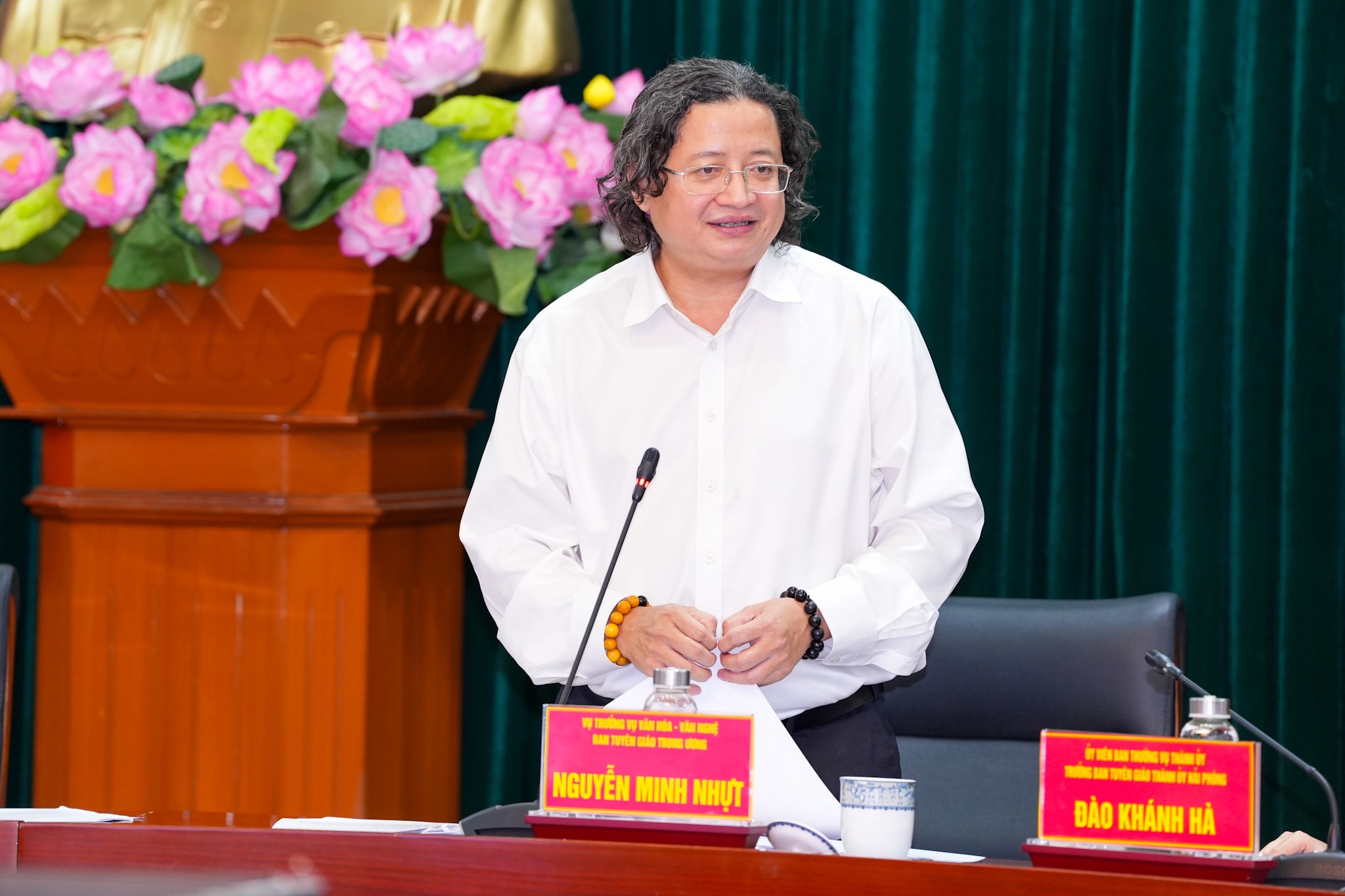 Đồng chí Nguyễn Minh Nhựt, Vụ trưởng Vụ Văn hoá - Văn nghệ, Ban Tuyên giáo Trung ương ghi nhận, Hải Phòng thành phố có nhiều cách làm hay, sáng tạo, hiệu quả trong thực hiện Nghị quyết số 33.Phát biểu tại cuộc làm việc, đại diện Đoàn công tác ghi nhận, Hải Phòng thành phố có nhiều cách làm hay, sáng tạo, hiệu quả trong thực hiện Nghị quyết số 33, trong đó, có một số chủ trương, quyết sách đột phá, mang dấu ấn riêng. Có cơ chế, chính sách đầu tư cho bảo tồn, phát huy các di sản văn hoá vật thể, phi vật thể trên địa bàn thành phố; coi trọng nhiệm vụ xây dựng, phát triển văn hoá, con người, có cơ chế chính sách phù hợp để đầu tư, khuyến khích đội ngũ văn nghệ sỹ, Nhân dân tích cực tham gia sáng tạo, cống hiến tài năng, trí tuệ.