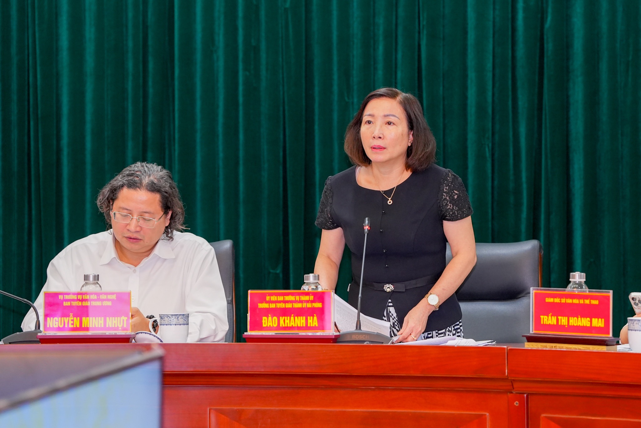 Đồng chí Đào Khánh Hà, Trưởng Ban Tuyên giáo Thành ủy phát biểu tại buổi làm việc.Đồng chí Đào Khánh Hà, Trưởng Ban Tuyên giáo Thành ủy nhấn mạnh, thành phố đã cụ thể hoá các mục tiêu, giải pháp về việc xây dựng, phát triển văn hoá, con người Hải Phòng đáp ứng yêu cầu phát triển bền vững đất nước, thành phố. Đồng thời luôn xác định văn hoá là nền tảng tinh thần xã hội, là động lực phát triển bền vững, góp phần xây dựng Hải Phòng trở thành thành phố đi đầu trong công nghiệp hóa, hiện đại hóa và khẳng định vai trò động lực phát triển đất nước./.