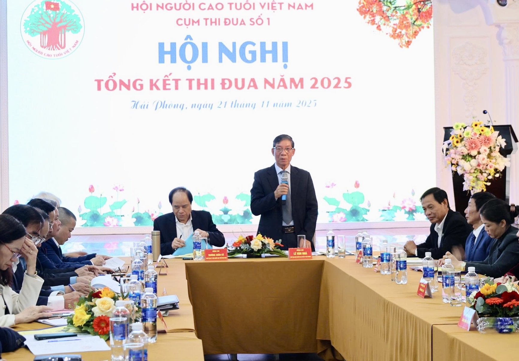 Đồng chí Lê Văn Nhã, Chủ tịch Hội Người cao tuổi thành phố Hải Phòng trao đổi tại Hội nghị.Dự Hội nghị có các đồng chí: Trương Xuân Cừ, Phó Chủ tịch Thường trực Hội Người cao tuổi Việt Nam; Lê Văn Nhã, Chủ tịch Hội Người cao tuổi thành phố Hải Phòng. Cùng dự có đại diện các ban, Văn phòng Trung ương Hội Người cao tuổi Việt Nam; lãnh đạo Hội Người cao tuổi các tỉnh, thành phố trong Cụm thi đua số 1. Cụm thi đua số 1 Hội Người cao tuổi Việt Nam gồm 8 tỉnh, thành phố thuộc khu vực Đồng bằng sông Hồng và Trung du miền núi phía Bắc.