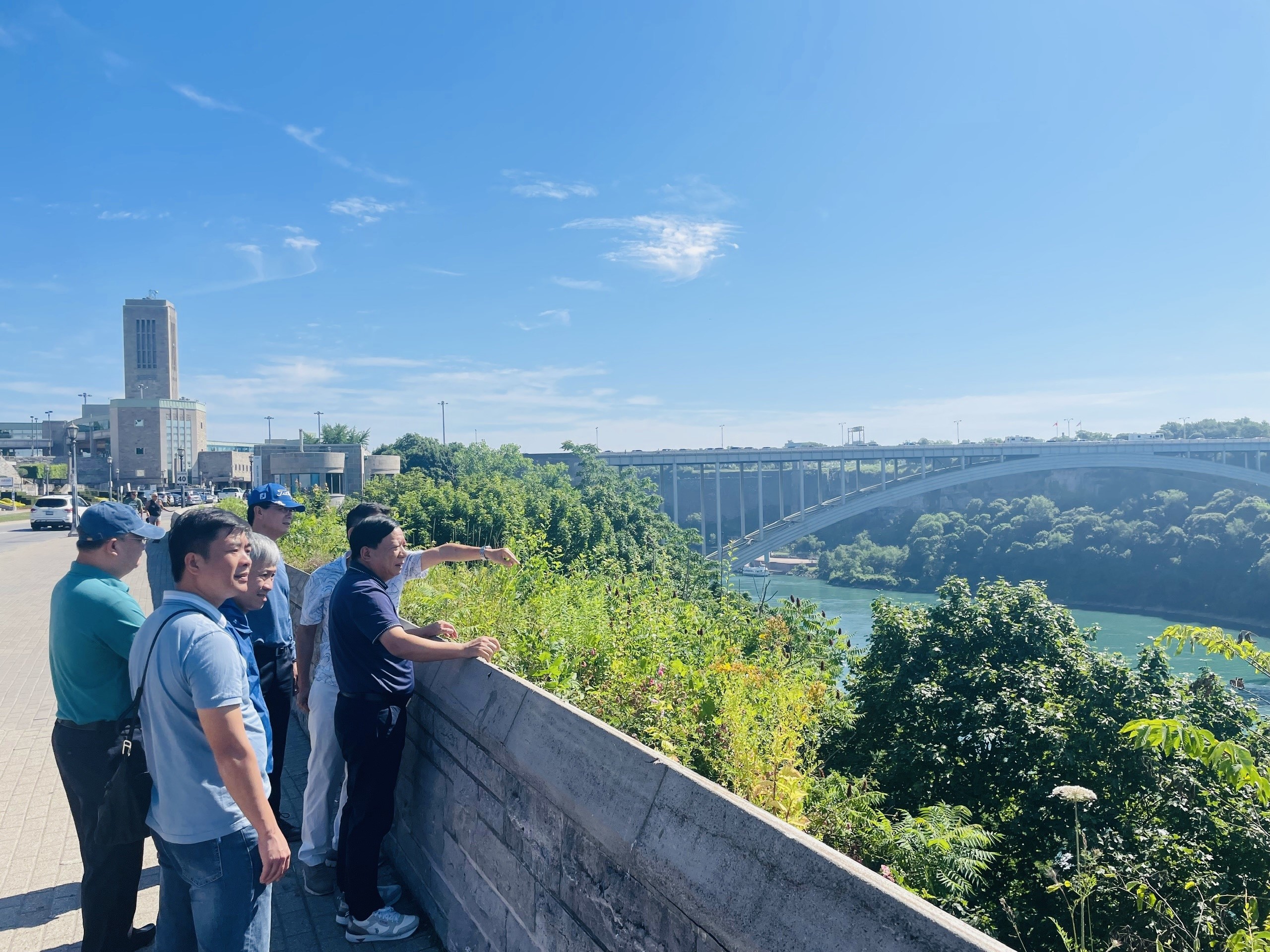 Đoàn khảo sát cầu Rainbow bắc qua sông Niagara nối Mỹ với Canada (cầu dài 289,5m, mặt cầu cao 61,5 m so với mặt nước sông).Trong khuôn khổ chuyến công tác, Phó Chủ tịch UBND thành phố Nguyễn Đức Thọ và Đoàn đã đi khảo sát thực tế một số công trình cầu, hạ tầng giao thông tại Mỹ và Ca-na-da./.