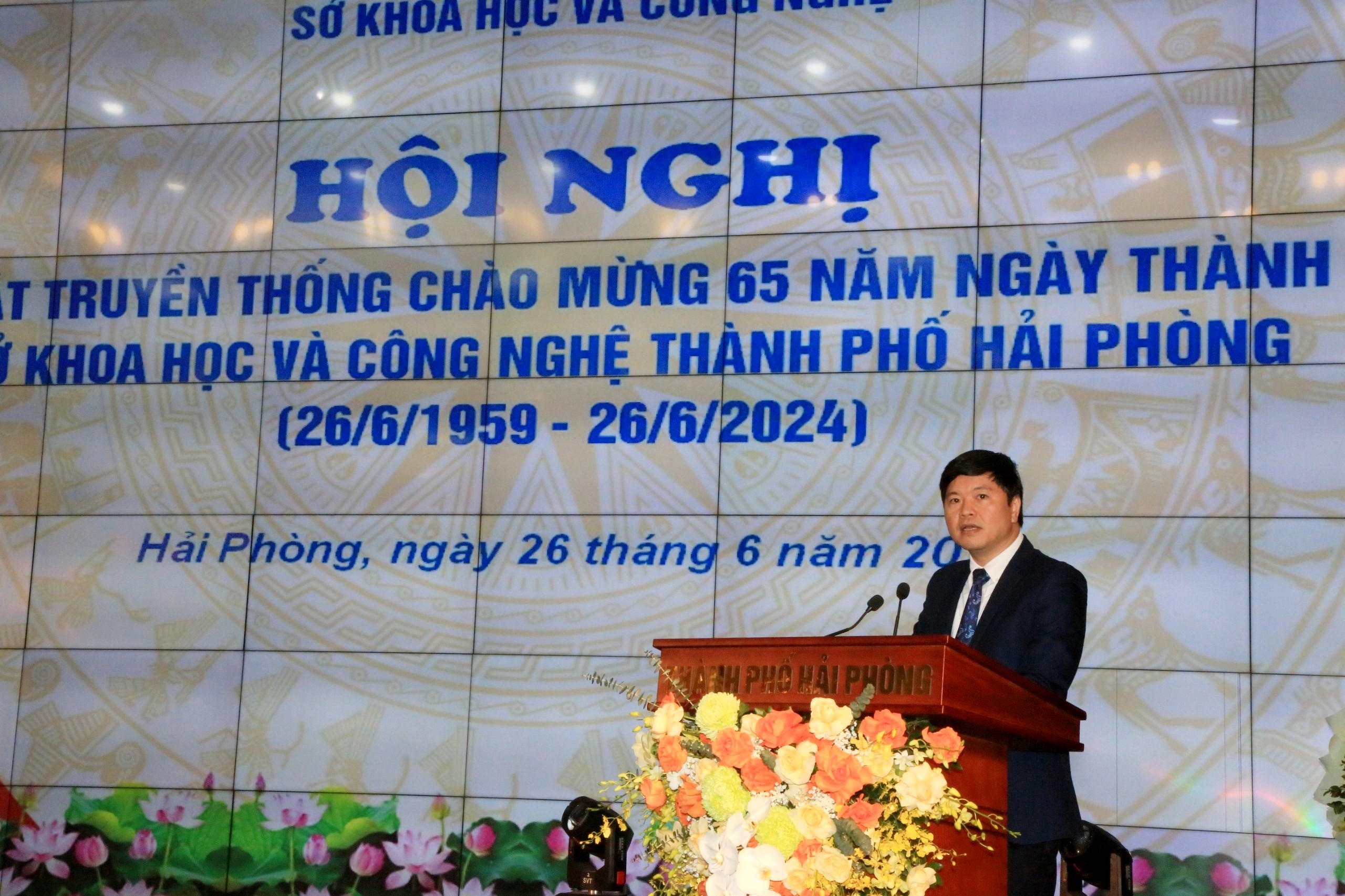 Giám đốc Sở Khoa học và Công nghệ Trần Quang Tuấn phát biểu tại Lễ kỷ niệmPhát biểu tại chương trình, Giám đốc Sở Khoa học và Công nghệ Trần Quang Tuấn nhấn mạnh, 65 năm qua, từ Ban Khoa học kỹ thuật trước đây, Sở Khoa học và Công nghệ ngày nay luôn làm tốt công tác tham mưu giúp Thành uỷ, HĐND và UBND thành phố lãnh đạo, chỉ đạo hiệu quả hoạt động khoa học và công nghệ của thành phố. Thành phố ban hành nhiều Nghị quyết, chiến lược, quy hoạch, kế hoạch quan trọng, định hướng phát triển khoa học và công nghệ, tập hợp đội ngũ trí thức, góp phần phát triển kinh tế - xã hội thành phố qua các thời kỳ… Với những kết quả đã đạt được, 65 năm qua, tập thể cán bộ, công chức, viên chức, người lao động Sở Khoa học và Công nghệ Hải Phòng đã được Đảng, Nhà nước, thành phố ghi nhận và tặng thưởng: 2 Huân chương Độc lập (hạng Nhì và hạng Ba), nhiều Huân chương Lao động, nhiều Bằng khen của Thủ tướng Chính phủ, Bộ Khoa học và Công nghệ, UBND thành phố.