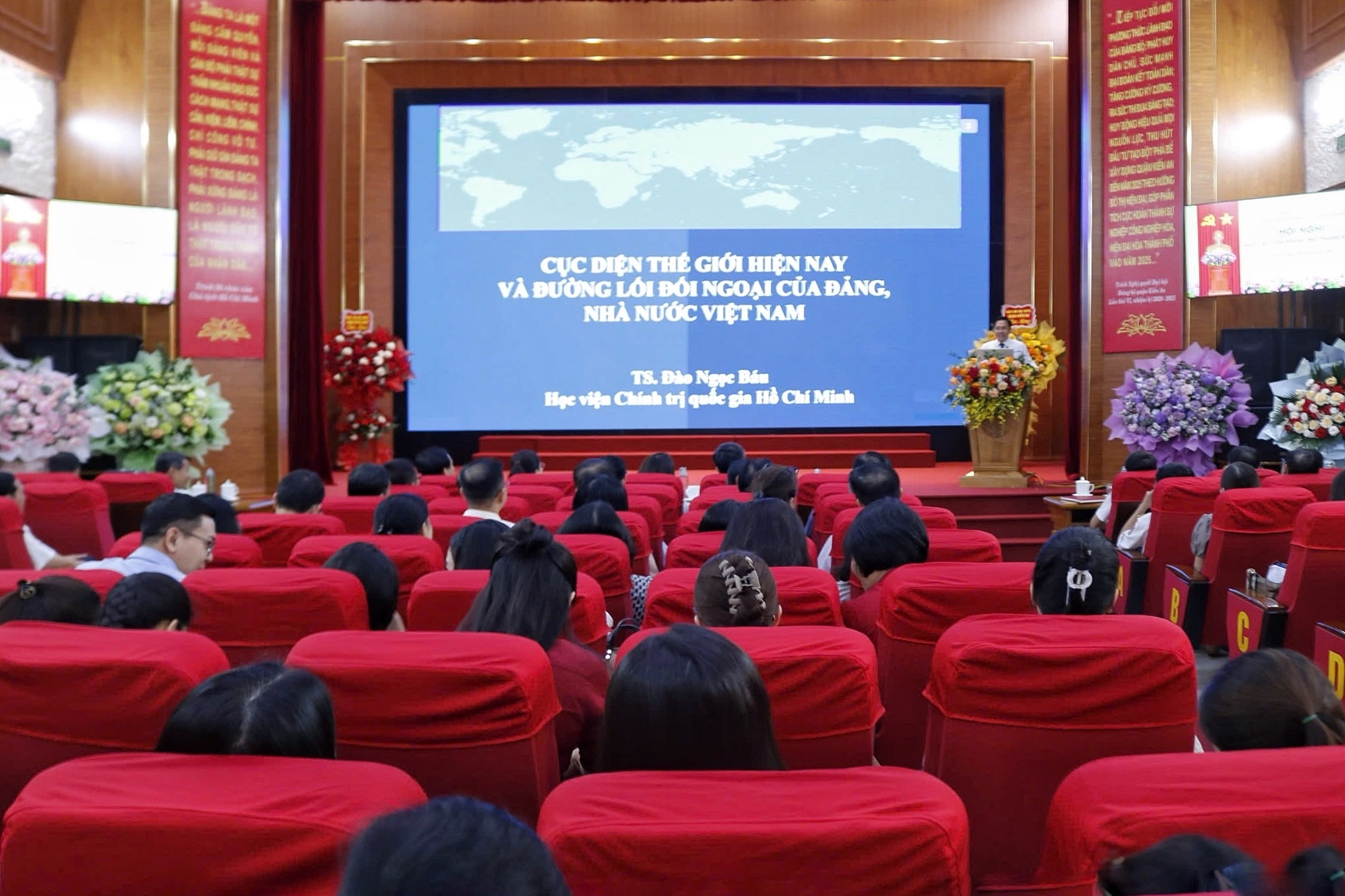 Tiến sĩ Đào Ngọc Báu, Viện trưởng Viện Quan hệ quốc tế, Học Viện Chính trị quốc gia Hồ Chí Minh thông tin về tình hình thế giới hiện nay và đường lối đối ngoại của Đảng và Nhà nước.Cũng tại Hội nghị, các báo cáo viên được nghe Tiến sĩ Đào Ngọc Báu, Viện trưởng Viện Quan hệ quốc tế, Học Viện Chính trị quốc gia Hồ Chí Minh thông tin về trường phái ngoại giao “cây tre Việt Nam”. Đặc biệt khẳng định nhất quán đường lối đối ngoại của Việt Nam đã được Nghị quyết Đại XIII của Đảng; Kết luận số 57-KL/TW, ngày 15/6/2023 của Bộ Chính trị về việc tiếp tục nâng cao chất lượng, hiệu quả công tác thông tin đối ngoại trong tình hình mới khẳng định, đó là “độc lập, tự chủ, đa phương hoá, đa dạng hoá; chủ động và tích cực hội nhập quốc tế toàn diện, sâu rộng, có hiệu quả; giữ vững môi trường hoà bình, ổn định, không ngừng nâng cao vị thế, uy tín quốc tế của Việt Nam”. Và các nội dung: đẩy mạnh tuyên truyền kết quả các hoạt động đối ngoại quan trọng của các đồng chí lãnh đạo Đảng, Nhà nước ta; bài viết “Quyết tâm xây dựng Đảng vững mạnh, nước Việt Nam giàu mạnh, dân chủ, công bằng, văn minh” của Tổng Bí thư, Chủ tịch nước Tô Lâm./.
