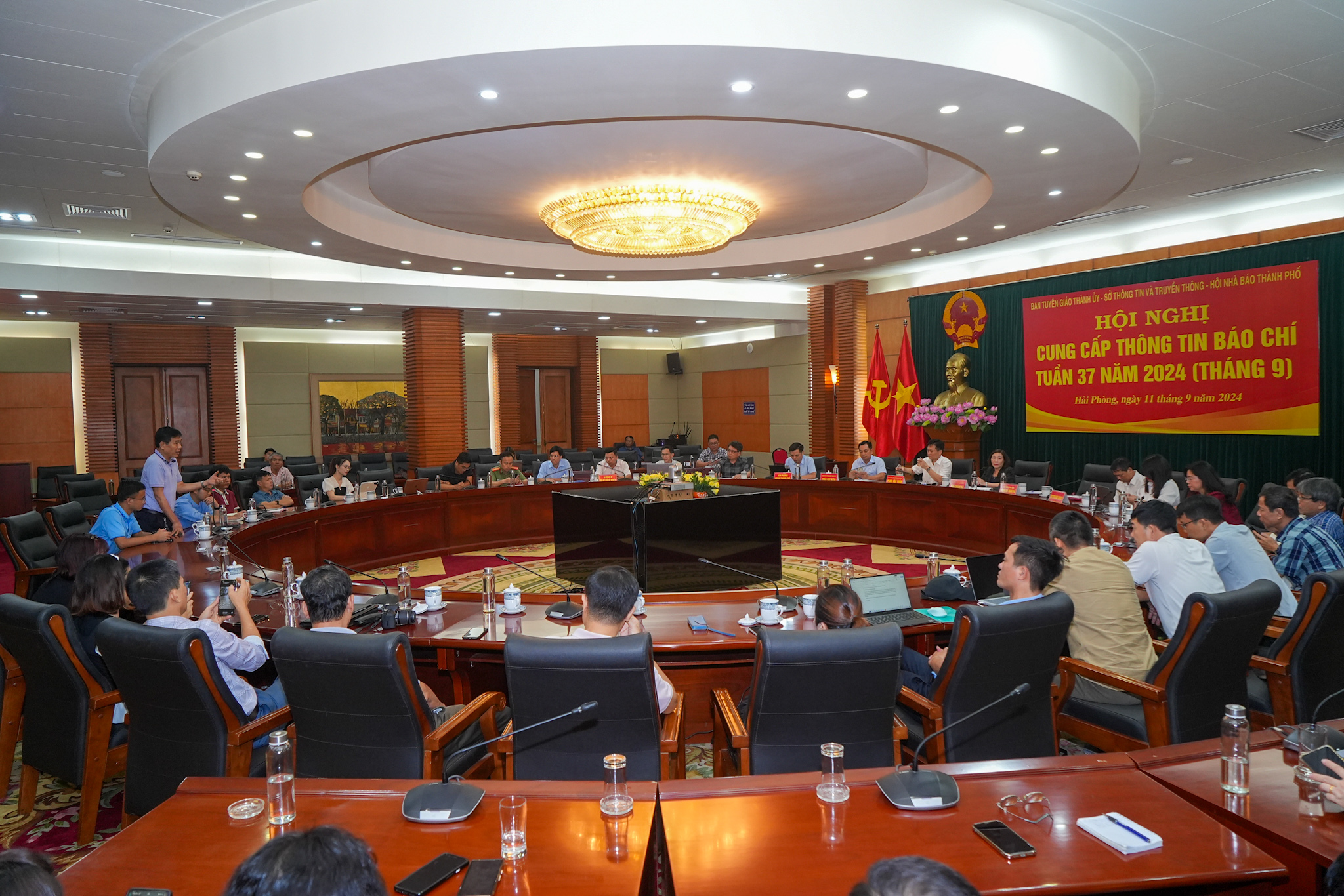 Hội nghị cung cấp thông tin Báo chí tuần 37 năm 2024.Tại Hội nghị, Giám đốc Sở Xây dựng Nguyễn Thành Hưng đã thông tin tới các cơ quan báo chí về thực trạng các chung cư cũ trên địa bàn thành phố, nhất là chung cư nguy hiểm; số hộ dân, tiến độ di dời các hộ dân tại các chung cư cũ; quỹ căn hộ chung cư bố trí cho các hộ dân đủ điều kiện, số hộ dân thuộc diện tạm lánh, mức hỗ trợ, thời gian hỗ trợ…Lãnh đạo Văn phòng UBND thành phố, Sở Thông tin và Truyền thông thông tin về những thiệt hại của Bão số 3, cùng các giải pháp khắc phục hậu quả tính tới thời điểm hiện tại.