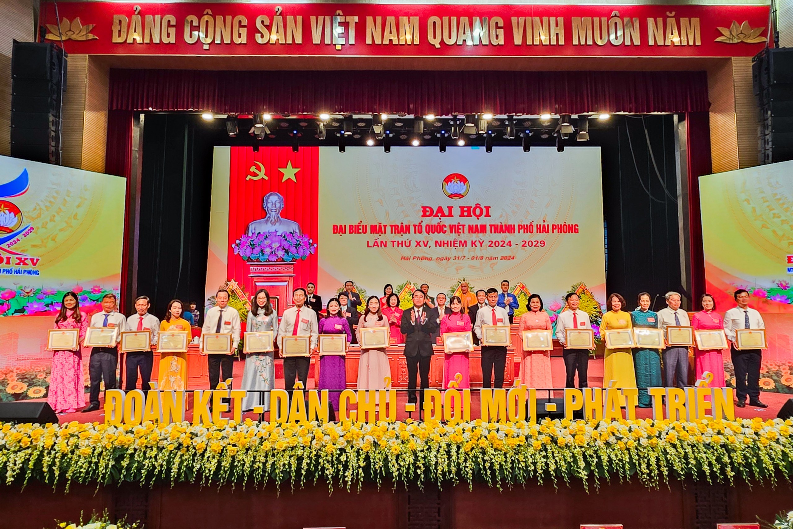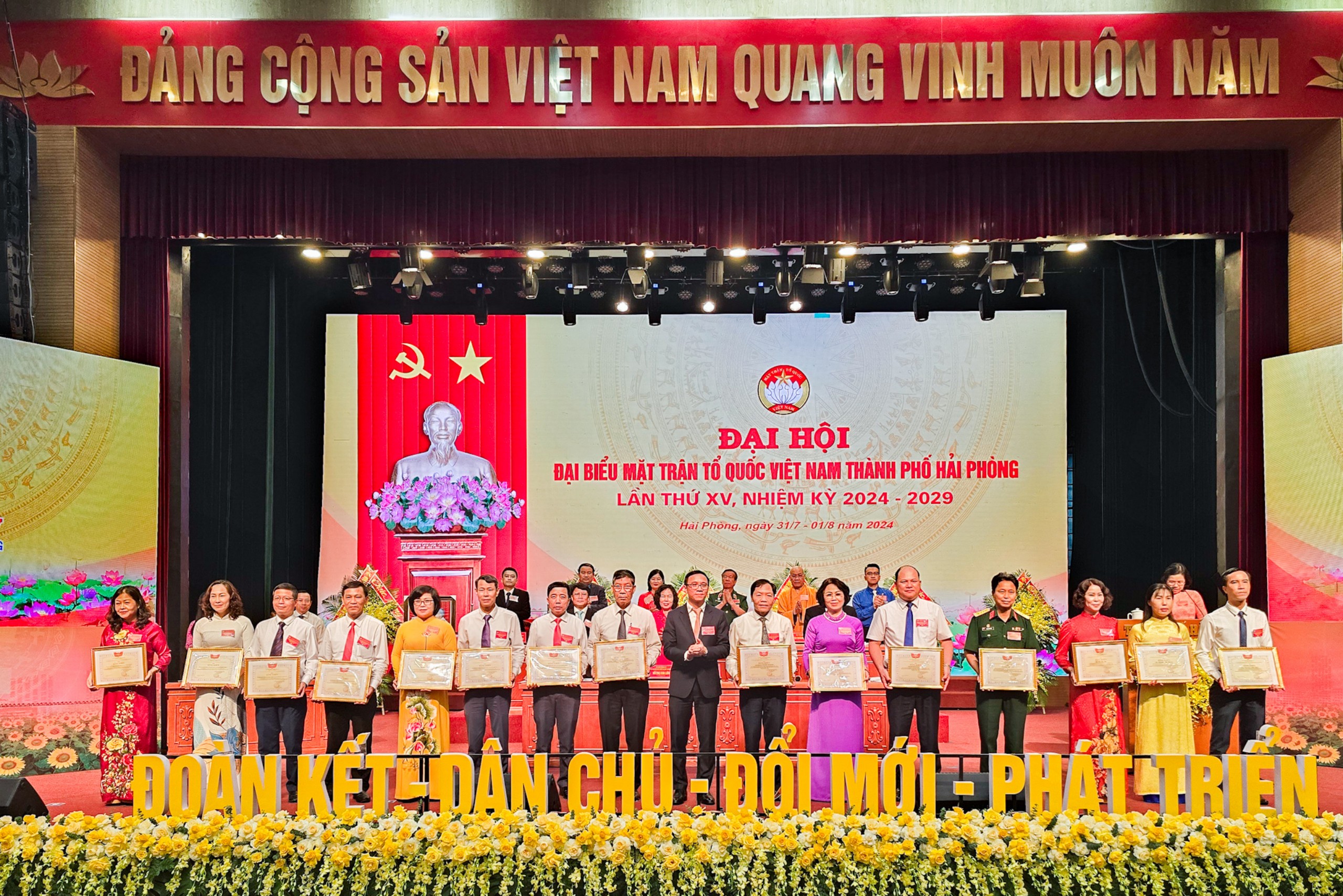 Chủ tịch Ủy ban MTTQ Việt Nam thành phố Đào Trọng Đức trao Bằng khen của Ủy ban MTTQ Việt Nam thành phố cho các tập thể và cá nhân.Tại Phiên họp thứ nhất Đại hội, 09 tập thể và 09 cá nhân đã có thành tích xuất sắc trong nhiệm kỳ 2019-2024 được nhận Bằng khen của Chủ tịch UBND thành phố; 12 tập thể và 03 cá nhân đã có thành tích xuất sắc trong nhiệm kỳ 2019-2024 được nhận Bằng khen của Chủ tịch Ủy ban MTTQ Việt Nam thành phố.