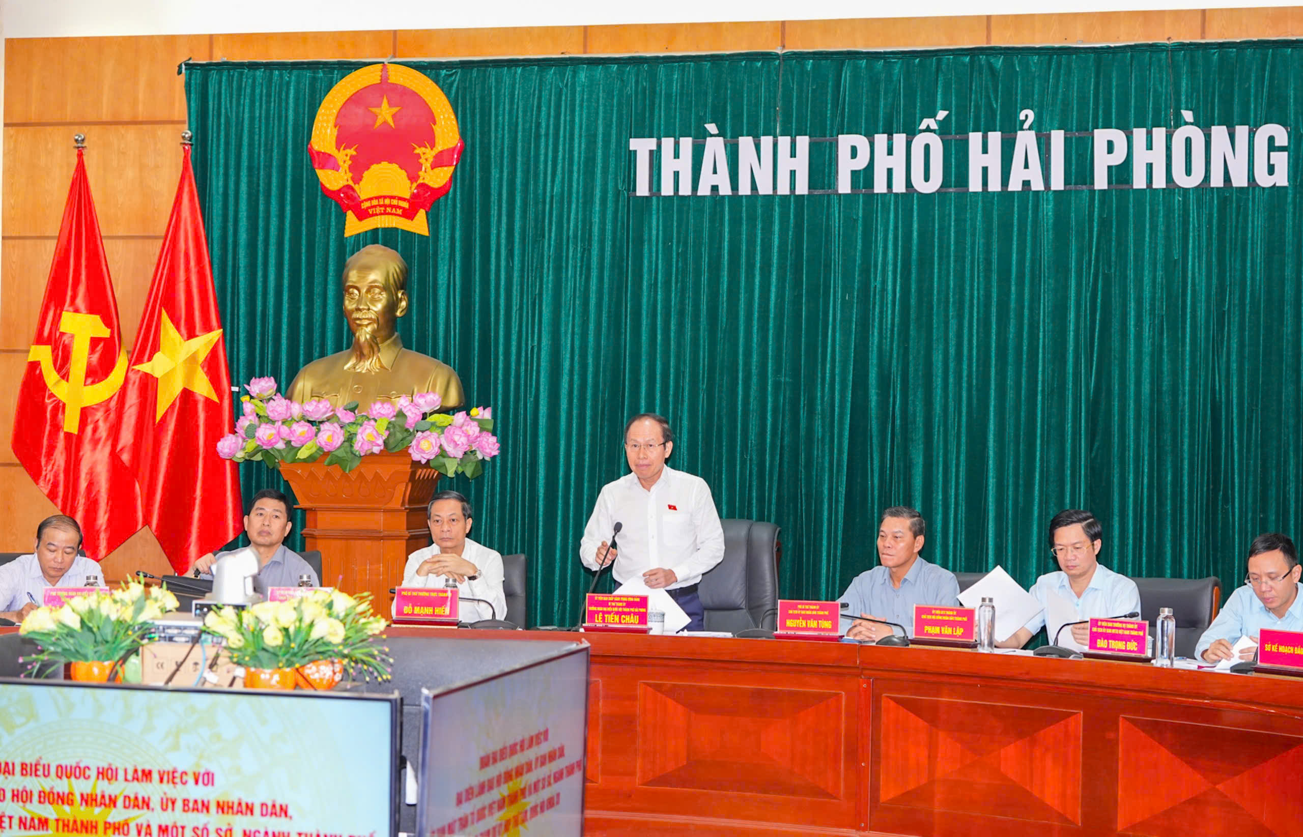 Qua nghe báo cáo và các ý kiến, đề xuất, kiến nghị của lãnh đạo HĐND, UBND, Ủy ban MTTQ Việt Nam thành phố và các sở, ngành, đơn vị liên quan, đồng chí Lê Tiến Châu, Bí thư Thành ủy, Trưởng Đoàn đại biểu Quốc hội Hải Phòng ghi nhận, tiếp thu các ý kiến thẳng thắn, xác đáng, tinh thần trách nhiệm cao, nghiên cứu kỹ và xuất phát từ những vướng mắc, “điểm nghẽn” từ thực tế triển khai các nhiệm vụ phát triển kinh tế-xã hội của thành phố, đòi hỏi cần có sự tháo gỡ, giải quyết, tạo cơ sở để Đoàn chuẩn bị nội dung, tham gia tại các diễn đàn của Quốc hội trong thời gian tới. Đồng chí đề nghị Văn phòng Đoàn đại biểu Quốc hội và HĐND thành phố nghiên cứu, mở rộng thành phần tham gia hội nghị quan trọng này để nêu rõ, phong phú hơn các đề xuất, kiến nghị tại hội nghị; tổng hợp các ý kiến phát biểu, phân loại và gửi các ý kiến, kiến nghị tới các bộ, ngành Trung ương, Chính phủ, Ủy ban Thường vụ Quốc hội, Quốc hội xem xét, giải quyết. Đoàn đại biểu Quốc hội thành phố tiếp tục theo dõi các nội dung trả lời của các bộ, ngành Trung ương đối với đề xuất, kiến nghị của Hải Phòng.