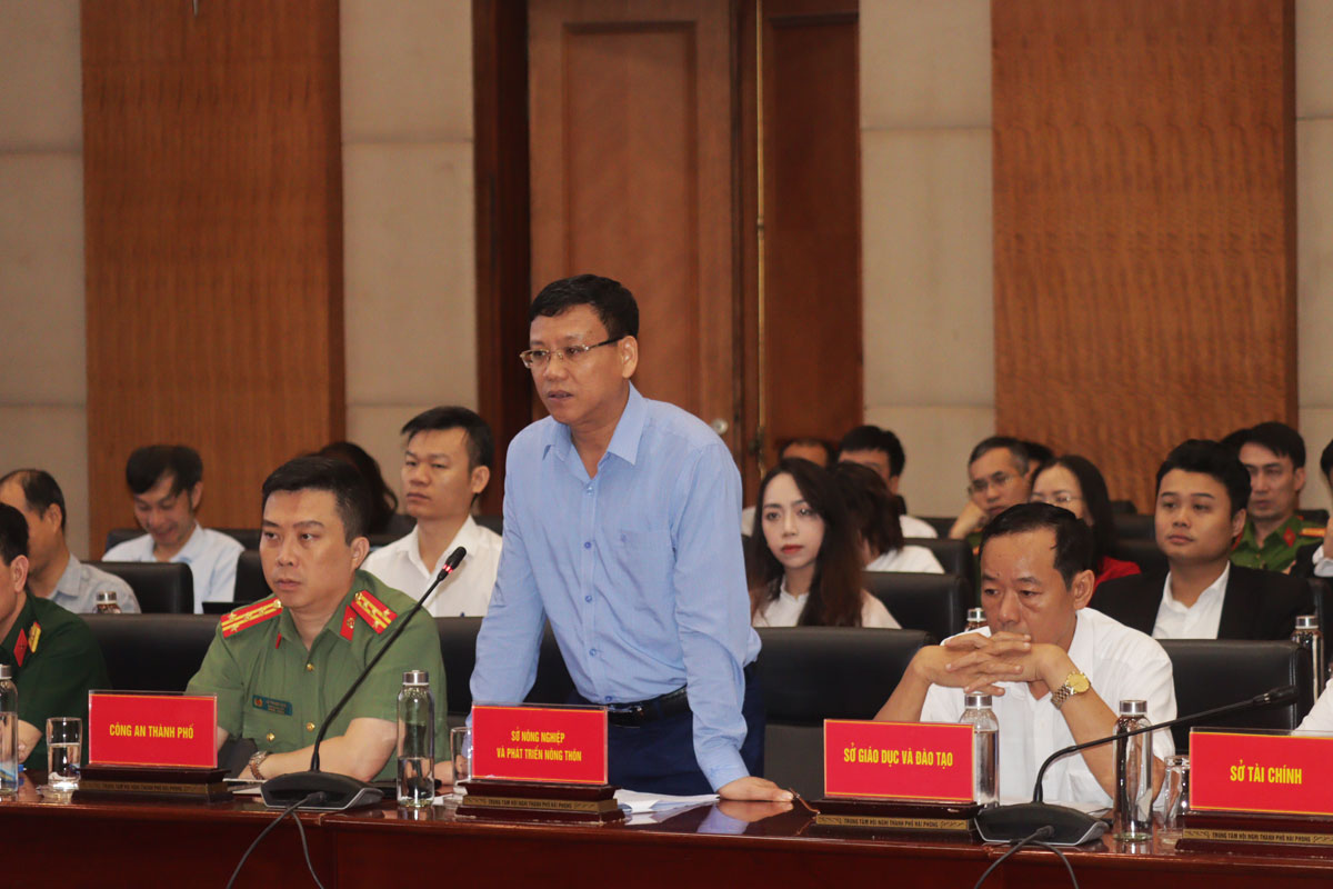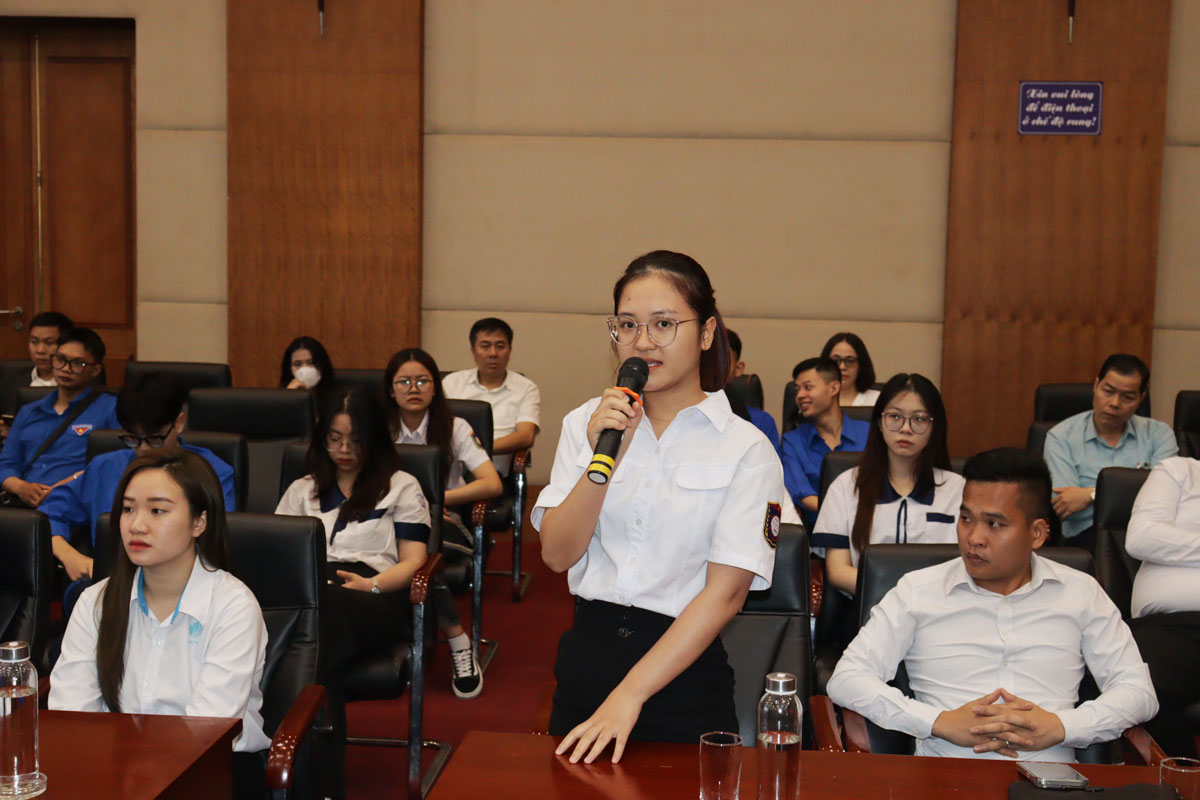 Đoàn viên thanh niên nêu ý kiến tại cuộc đối thoại.Trong thời gian qua, thành phố đã có những chủ trương, giải pháp nào để phát huy được lợi thế, tiềm năng phát triển du lịch của thành phố cũng như định hướng, phát triển nguồn nhân lực trong lĩnh vực du lịch và các ngành nghề phục vụ cho phát triển du lịch thành phố; giải pháp để đẩy mạnh việc cung cấp thông tin về xuất khẩu lao động hợp pháp tới đối tượng là thanh niên muốn tham gia xuất khẩu lao động; chủ trương, chính sách về việc làm dành riêng cho đối tượng là sinh viên đang theo học hoặc đã tốt nghiệp các ngành liên quan trực tiếp tới ba trụ cột kinh tế của thành phố là công nghiệp công nghệ cao, cảng biển - logistics, du lịch - thương mại; chính sách đối với việc hỗ trợ việc làm cho người khuyết tật; chủ trương, chính sách để tạo môi trường thúc đẩy sự sáng tạo và khuyến khích thanh niên tham gia nghiên cứu khoa học vào phát triển công nghệ mới.