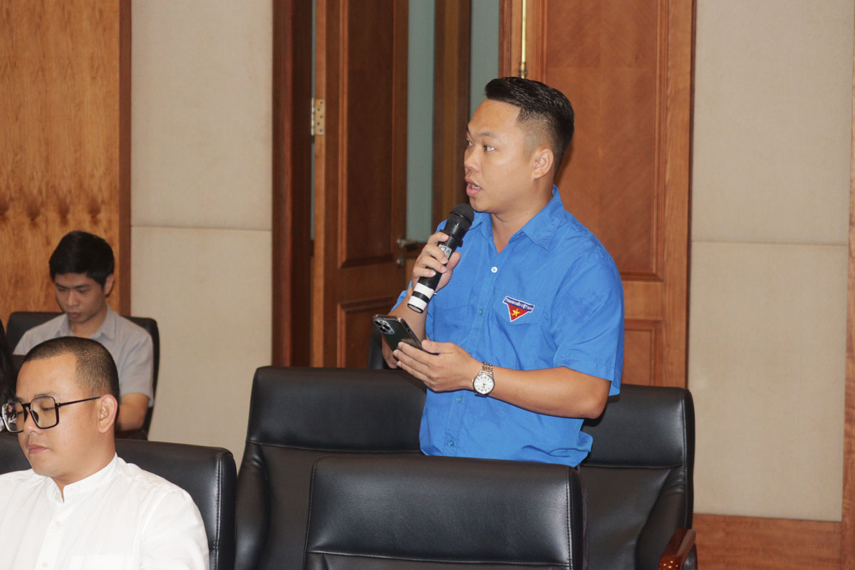 Đoàn viên thanh niên nêu ý kiến tại cuộc đối thoại.Đoàn viên thanh niên đề nghị thành phố thông tin về việc hỗ trợ tiếp cận công nghệ số trong sản xuất nông nghiệp tại địa phương và đầu ra cho các sản phẩm nông nghiệp; thành phố có các phương án, chính sách hỗ trợ như thế nào cho đối tượng thanh niên khởi nghiệp, lập nghiệp trong lĩnh vực nông nghiệp; chính sách để giúp lực lượng thanh niên đã hoàn thành nghĩa vụ quân sự trở về địa phương là sinh viên đã tốt nghiệp đại học, cao đẳng duy trì được kỹ năng, tay nghề, trình độ chuyên môn trong khi tham gia nghĩa vụ quân sự.
