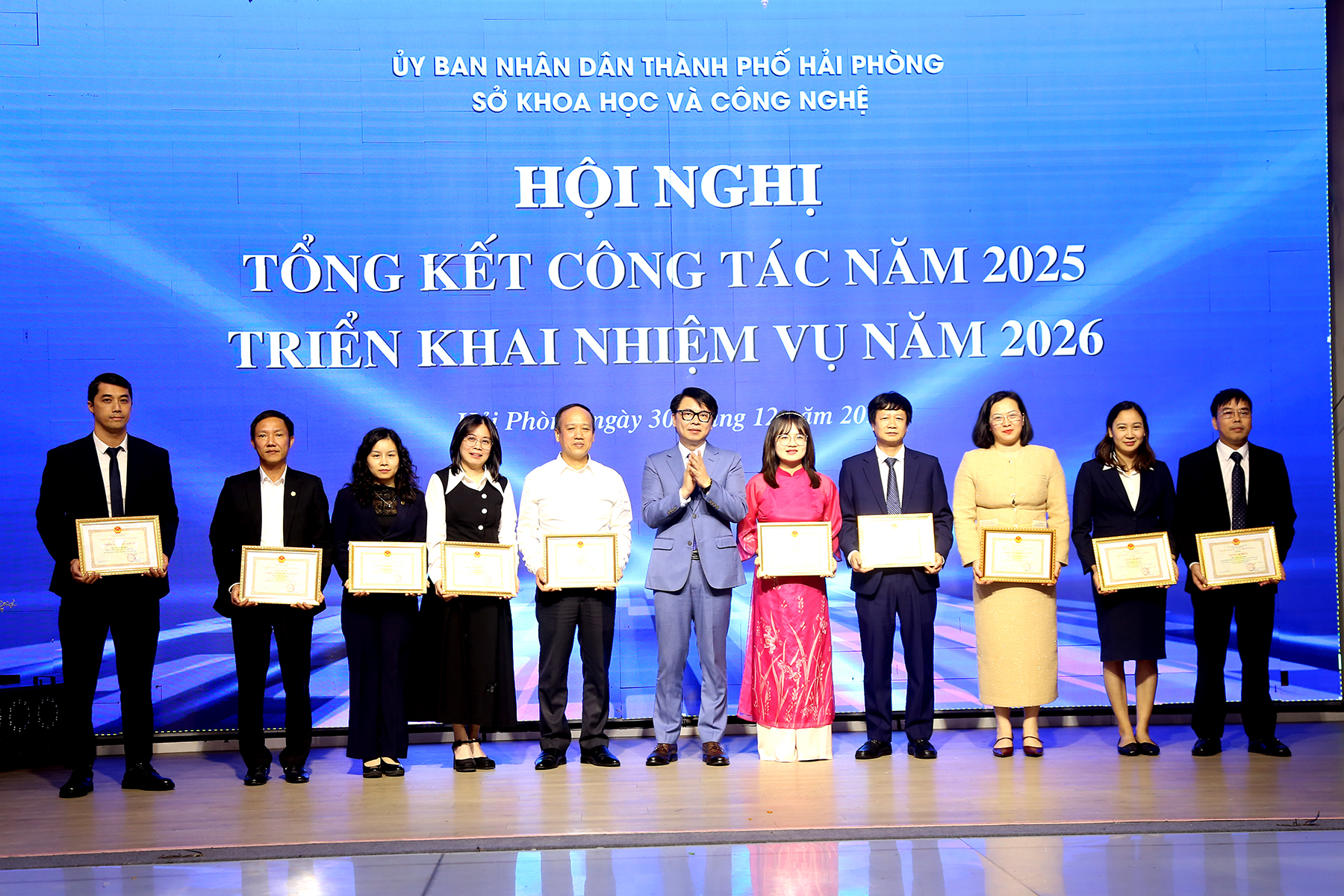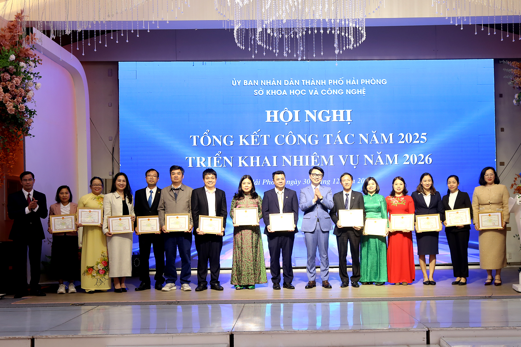 (Haiphong.gov.vn) – Chiều 30/12, Sở Khoa học và Công nghệ thành phố tổ chức Hội nghị tổng kết hoạt động khoa học, công nghệ và đổi mới sáng tạo năm 2025; triển khai nhiệm vụ năm 2026. Dự Hội nghị có Phó Chủ tịch UBND thành phố Hoàng Minh Cường; cùng đại diện lãnh đạo các Sở, ban, ngành, địa phương và đơn vị liên quan.