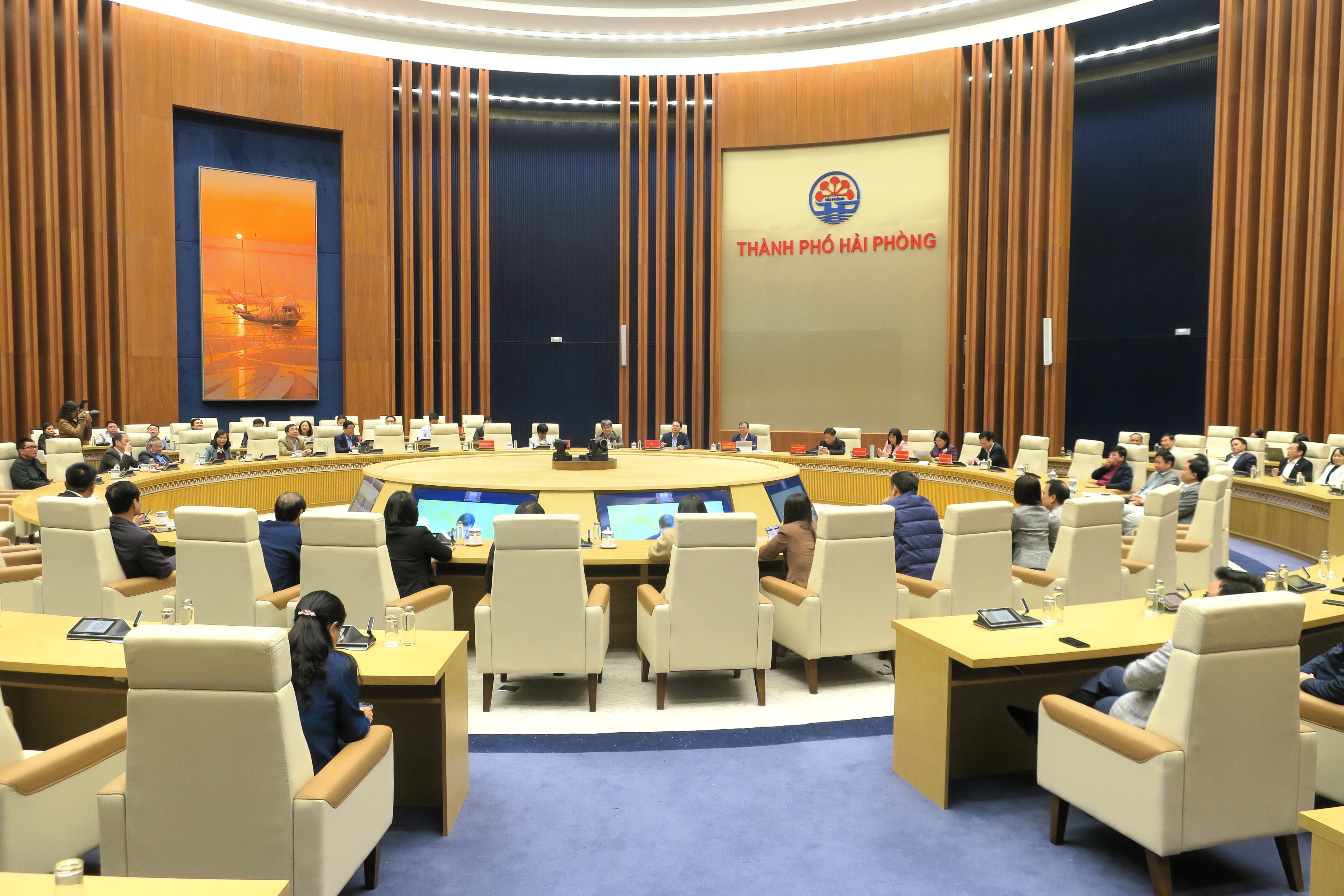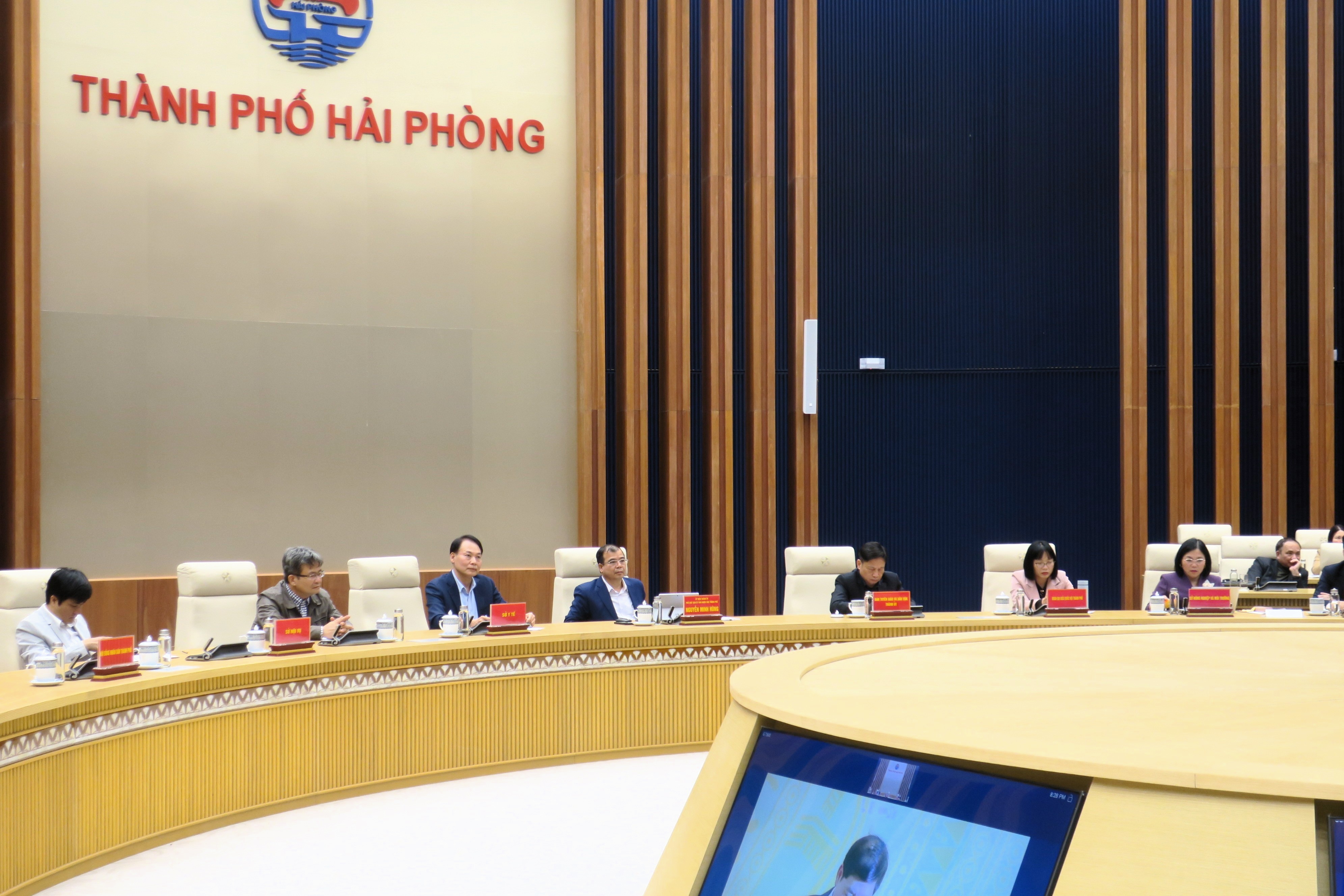 Tại điểm cầu thành phố Hải Phòng, Phó Chủ tịch UBND thành phố Nguyễn Minh Hùng cùng đại diện lãnh đạo các Sở, ngành, đơn vị liên quan tham dự Hội nghị.