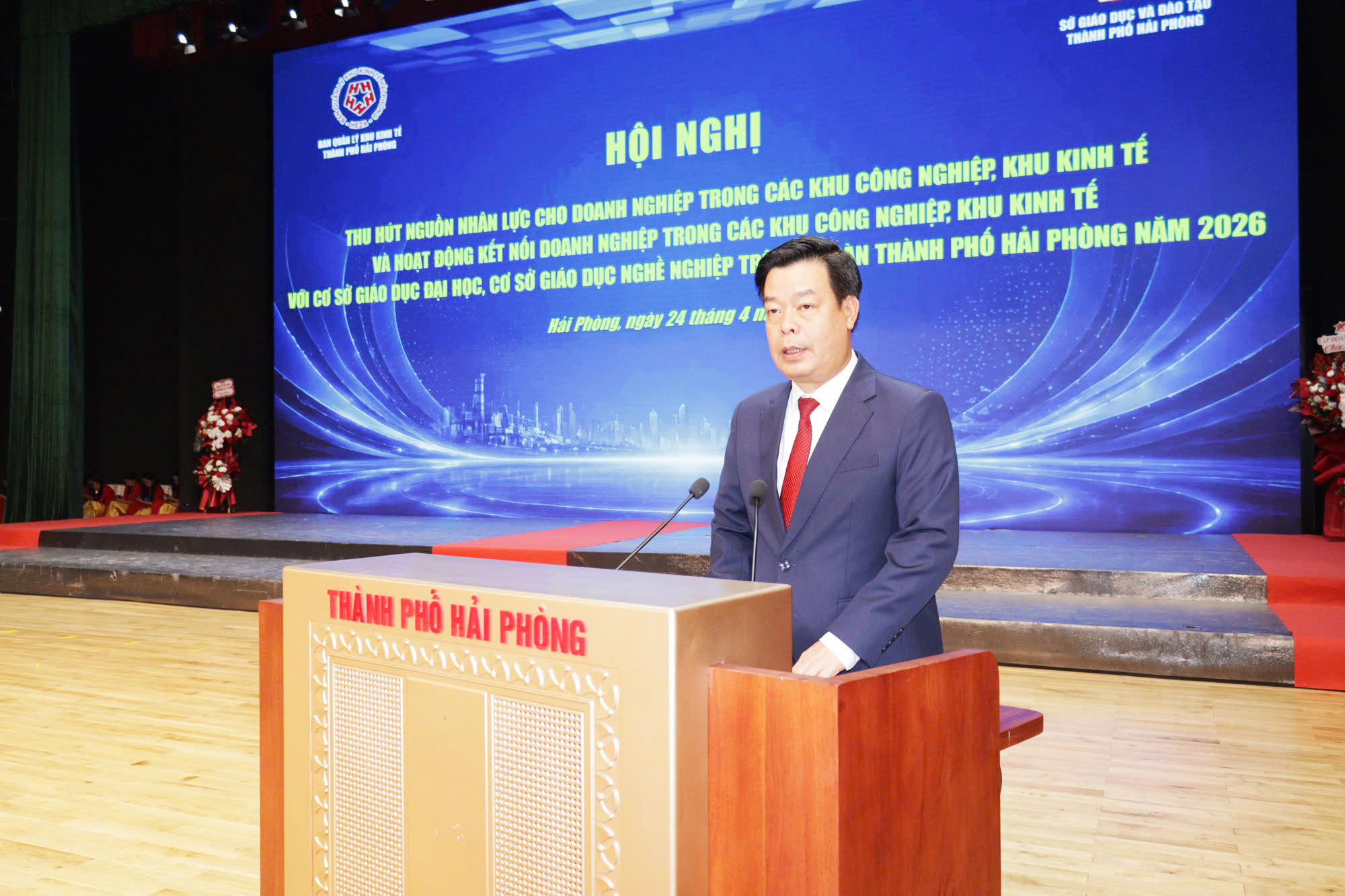 (Haiphong.gov.vn) - Sáng 24/4, Ban Quản lý Khu Kinh tế Hải Phòng phối hợp với Sở Giáo dục và Đào tạo tổ chức Ngày hội thu hút nguồn nhân lực cho doanh nghiệp trong các Khu công nghiệp, Khu kinh tế và hoạt động kết nối doanh nghiệp trong các Khu công nghiệp, Khu kinh tế với cơ sở giáo dục đại học, cơ sở giáo dục nghề nghiệp trên địa bàn thành phố Hải Phòng năm 2026.