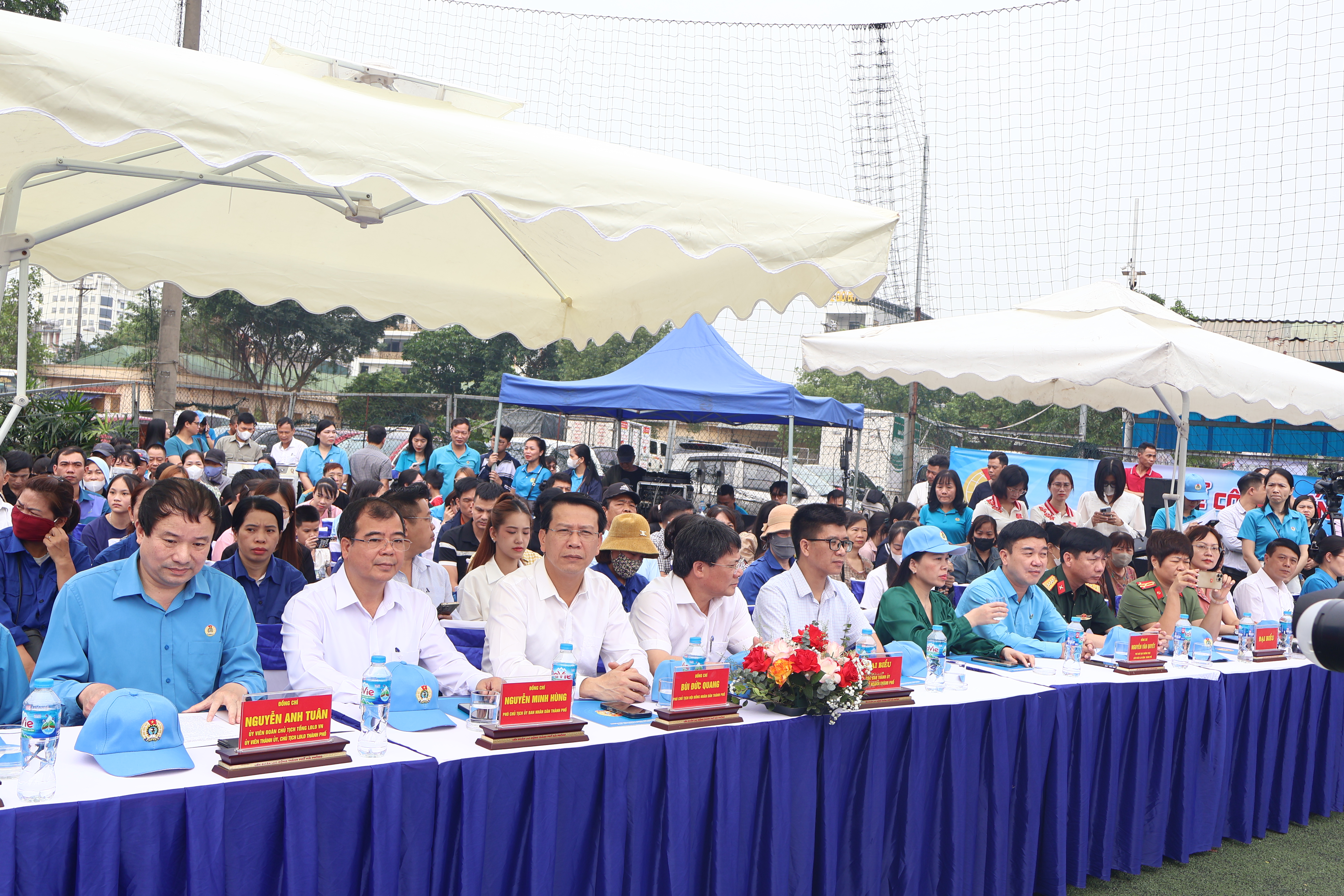 Các đồng chí lãnh đạo thành phố và đại biểu dự sự kiệnDự buổi Lễ có các đồng chí: Vũ Anh Đức, Phó Bí thư chuyên trách Đảng ủy Tổng Liên đoàn Lao động Việt Nam; Bùi Đức Quang, Phó Chủ tịch HĐND thành phố; Nguyễn Minh Hùng, Phó Chủ tịch UBND thành phố; cùng lãnh đạo các Sở, ban, ngành, địa phương, đơn vị và hàng nghìn đoàn viên, người lao động thuộc các công đoàn cơ sở trên địa bàn thành phố. Chương trình được kết nối trực tuyến tới 8 điểm cầu tại các công đoàn cơ sở tiêu biểu.