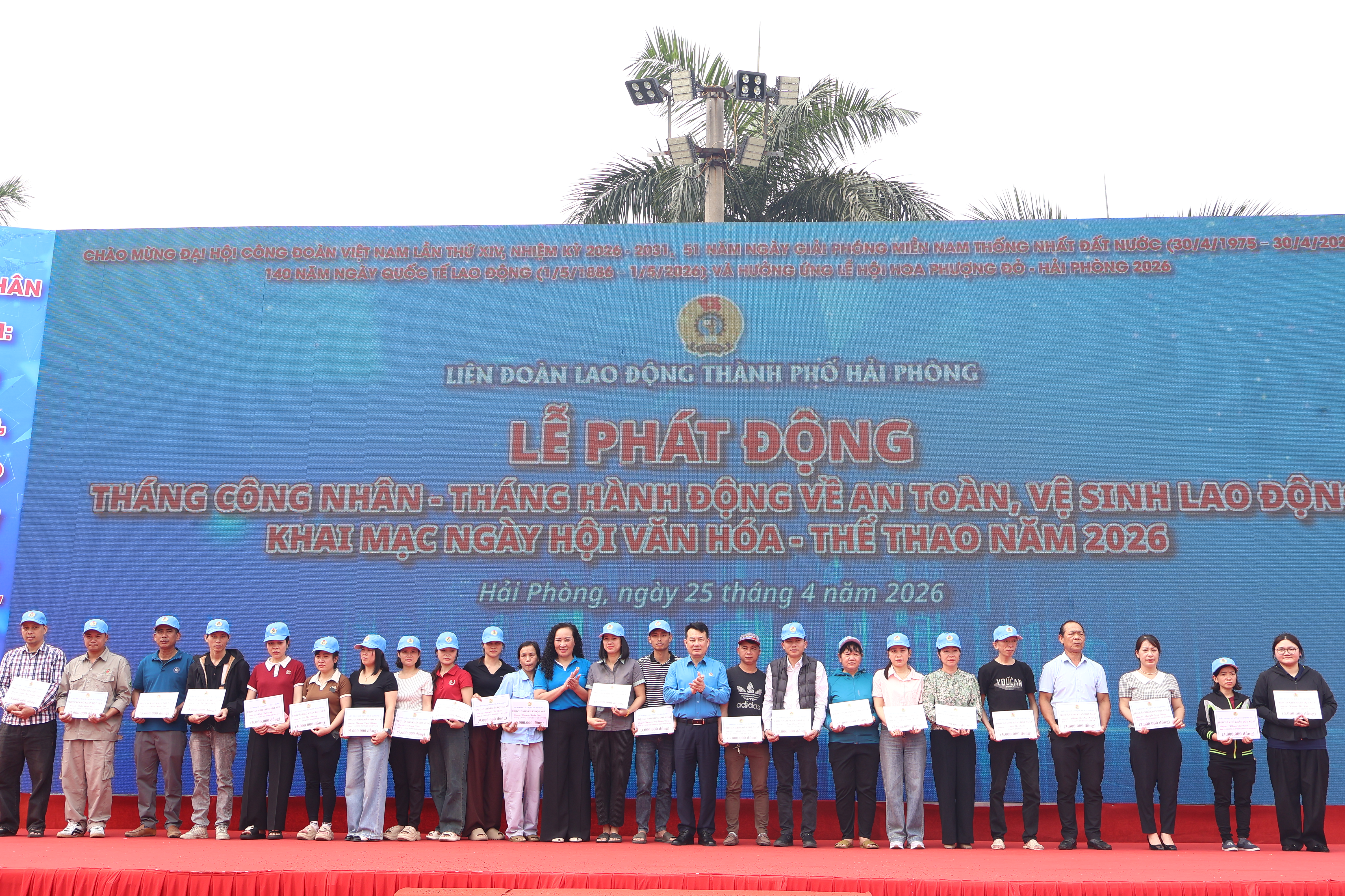 (Haiphong.gov.vn) - Sáng 25/4, tại Trung tâm Tư vấn pháp luật và Hỗ trợ người lao động (phường Thành Đông), Liên đoàn Lao động thành phố Hải Phòng tổ chức Lễ phát động Tháng Công nhân, Tháng hành động về An toàn, vệ sinh lao động (ATVSLĐ), khai mạc “Ngày hội Văn hóa - Thể thao” năm 2026.