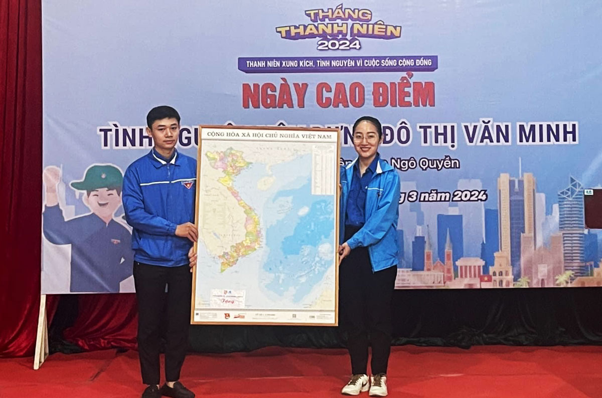 Trao tặng bản đồ cho các cơ sở Đoàn trực thuộc.