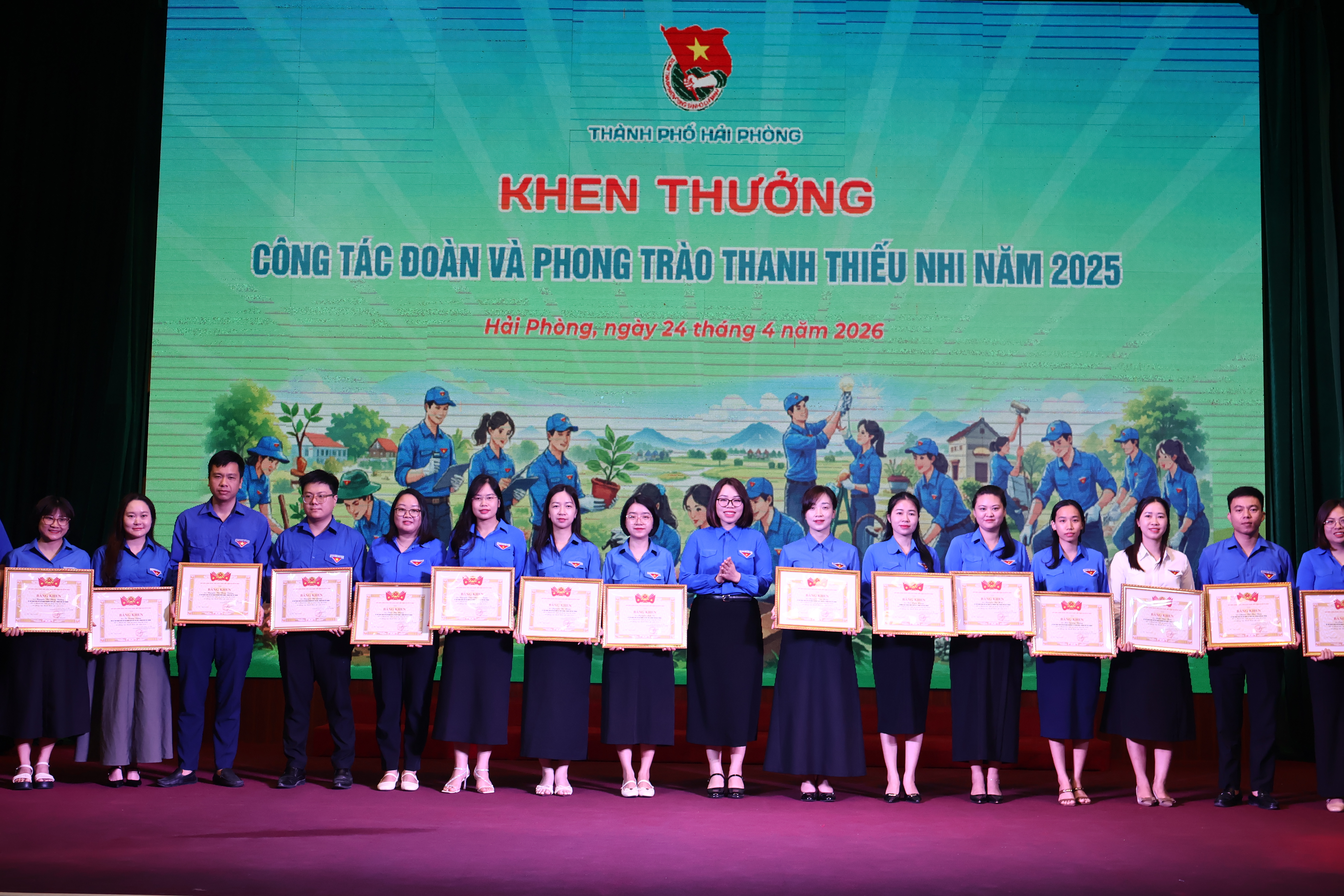 Tại hội nghị, Ban Chấp hành Trung ương Đoàn đã tặng Bằng khen cho 3 tập thể và 10 cá nhân có thành tích xuất sắc trong Tháng Thanh niên 2026; Thành đoàn Hải Phòng trao Cờ thi đua cho 18 tập thể dẫn đầu các cụm, khối.