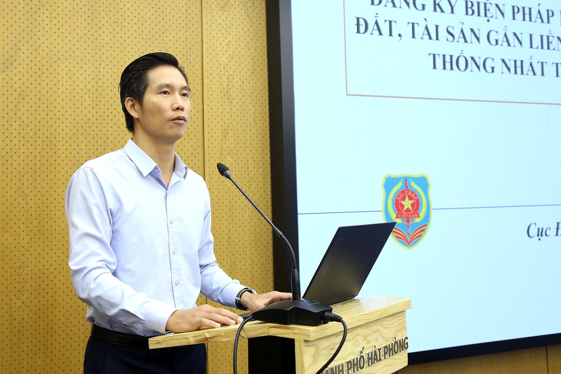 Phó Giám đốc Sở Tư pháp Bùi Văn Vi phát biểu tại Tọa đàm.Tại buổi Tọa đàm, các đại biểu đã được nghe các nhà quản lý, chuyên gia pháp lý trình bày, trao đổi và chia sẻ nhiều nội dung quan trọng liên quan đến công tác bảo đảm thực hiện nghĩa vụ và đăng ký biện pháp bảo đảm. Các nội dung trọng tâm được đề cập gồm: Pháp luật về bảo đảm thực hiện nghĩa vụ, đăng ký biện pháp bảo đảm bằng quyền sử dụng đất, tài sản gắn liền với đất và một số vấn đề cần thống nhất trong áp dụng, thi hành; tình hình triển khai thực hiện pháp luật về bảo đảm thực hiện nghĩa vụ và đăng ký biện pháp bảo đảm bằng quyền sử dụng đất, tài sản gắn liền với đất tại thành phố Hải Phòng; đẩy mạnh chuyển đổi số trong lĩnh vực đăng ký biện pháp bảo đảm tại thành phố Hải Phòng – thực trạng, đề xuất và kiến nghị; cùng với đó là thực tiễn áp dụng pháp luật về bảo đảm thực hiện nghĩa vụ và đăng ký biện pháp bảo đảm bằng quyền sử dụng đất, tài sản gắn liền với đất nhìn từ hoạt động thi hành án dân sự tại địa phương.