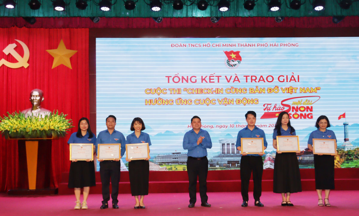Trao giải Cuộc thi ảnh “Check-in cùng bản đồ Việt Nam”.Ban Thường vụ Thành đoàn tổng kết và trao giải Cuộc thi ảnh “Check-in cùng bản đồ Việt Nam” bao gồm: 1 giải Nhất, 2 giải Nhì, 4 giải Ba, 6 giải Khuyến khích, 3 giải Lan tỏa dành cho tập thể có nhiều sản phẩm dự thi nhất và 3 giải Truyền thông dành cho các tác giả có sản phẩm được nhiều tương tác nhất trên nền tảng mạng xã hội Facebook và Tiktok Thành đoàn Hải Phòng.