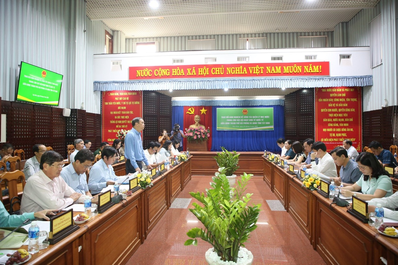 Chương trình làm việc giữa 02 địa phương thành phố Hải Phòng và tỉnh Tây Ninh.Tại chương trình làm việc, lãnh đạo các ngành chức năng của hai địa phương đã cùng chia sẻ, phân tích những tồn tại, hạn chế và đề xuất những giải pháp liên quan trong quá trình triển khai hội nhập kinh tế quốc tế. Từ đó, nhằm đảm bảo đồng bộ, hiệu quả, thống nhất trong chỉ đạo, điều hành, phù hợp với chủ trương, đường lối chính sách của Đảng, Nhà nước và phù hợp với thực tiễn tại địa phương. Hai địa phương cũng chia sẻ những định hướng trong hoạt động xúc tiến thương mại nội địa, giải pháp nâng cao hiệu quả xúc tiến thương mại trực tuyến, xuất khẩu qua các nền tảng số; những mô hình, sáng kiến, giải pháp trong cải cách hành chính tại các địa phương. Đồng thời, thảo luận, nghiên cứu cơ chế hợp tác, kết nối liên thông giữa các địa phương trong lĩnh vực logistics; tìm kiếm cơ hội hợp tác đầu tư, kết nối giao thương giữa các doanh nghiệp của các địa phương với nhau...