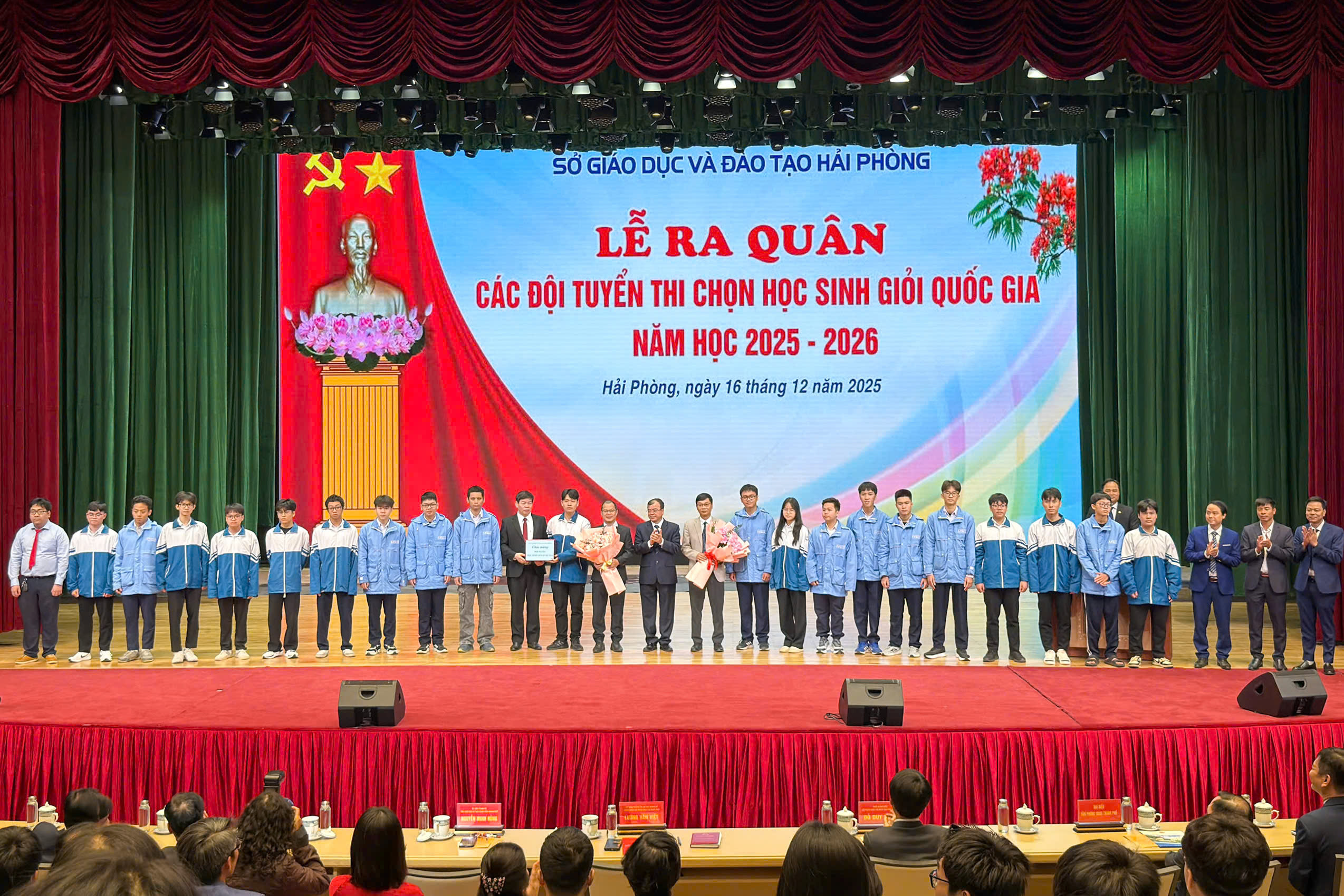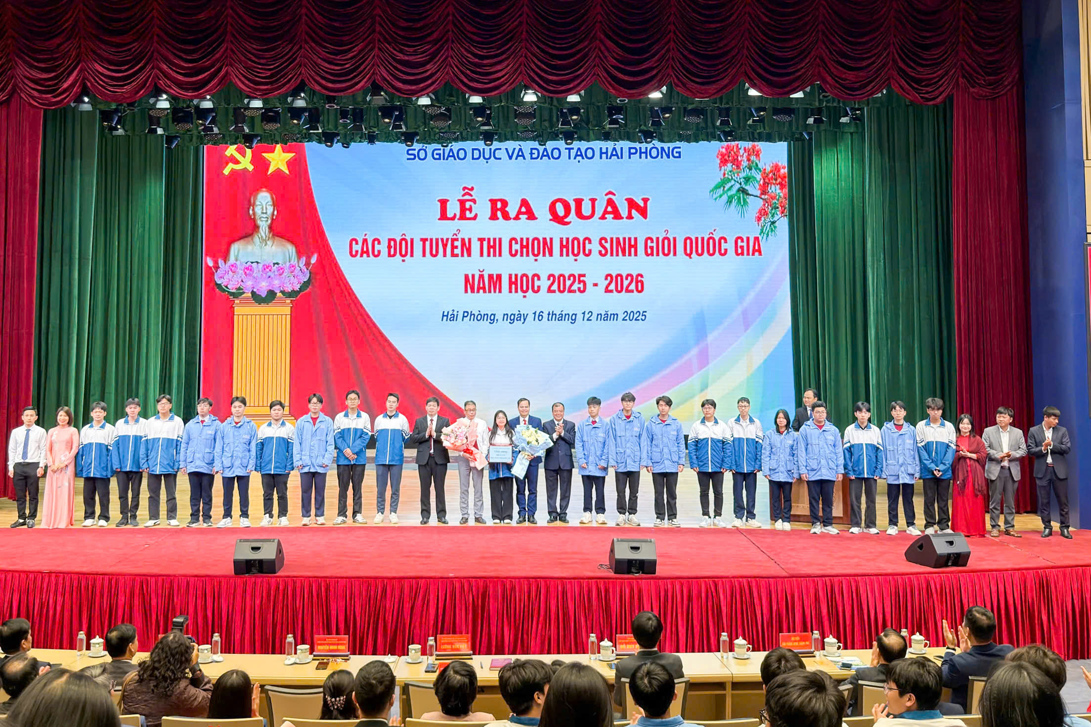 (Haiphong.gov.vn) - Sáng 16/12, Sở Giáo dục và Đào tạo tổ chức Lễ ra quân các Đội tuyển thi chọn học sinh giỏi quốc gia năm học 2025 - 2026. Dự Lễ ra quân có Phó Chủ tịch UBND thành phố Nguyễn Minh Hùng; cùng đại diện lãnh đạo các Sở, ngành, đơn vị liên quan và 242 học sinh thuộc 13 Đội tuyển các môn văn hóa tham dự kỳ thi chọn học sinh giỏi quốc gia.