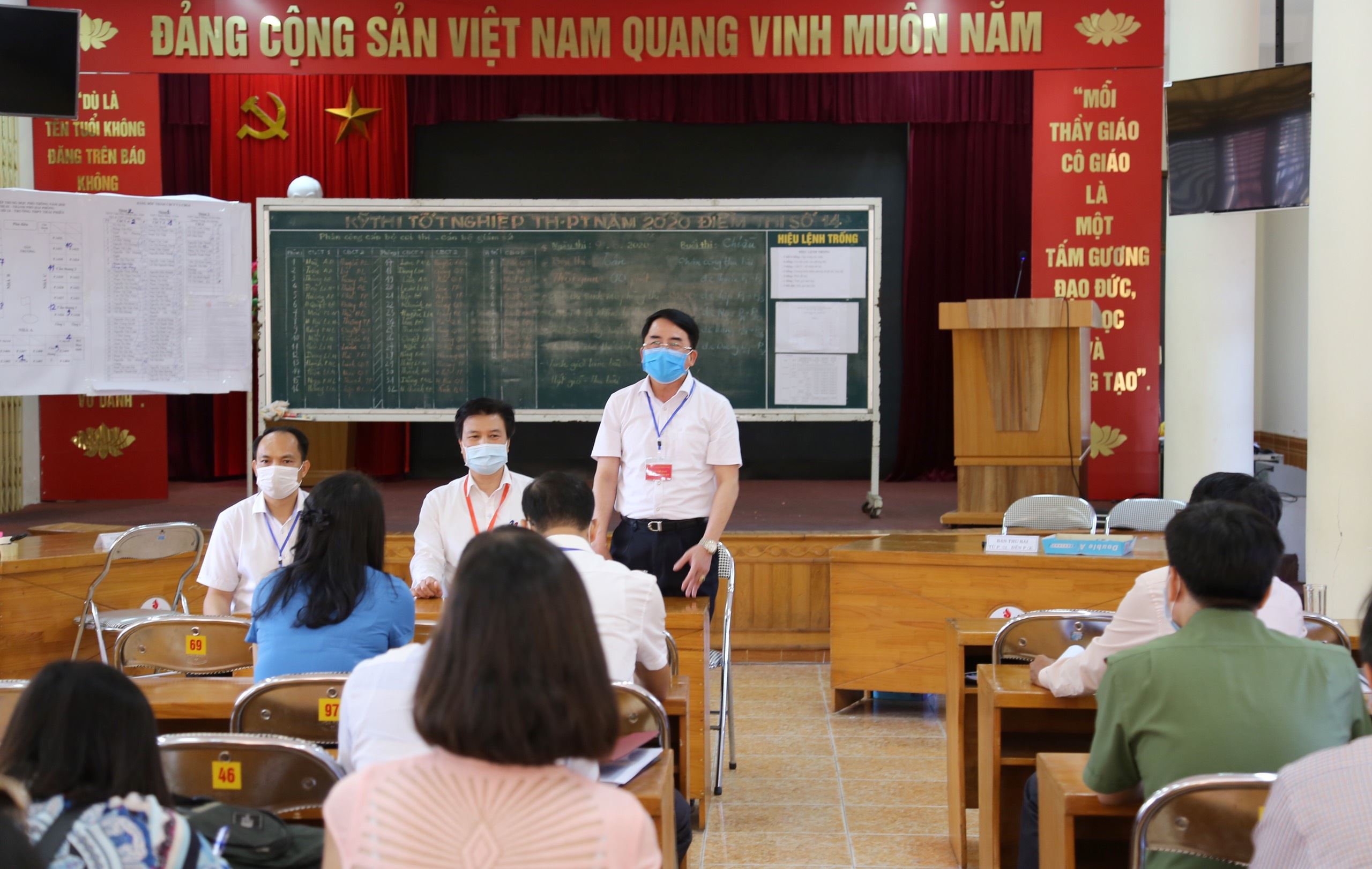 Đoàn công tác trực tiếp kiểm tra một số phòng thi tại điểm thi Trường THPT Thái Phiên