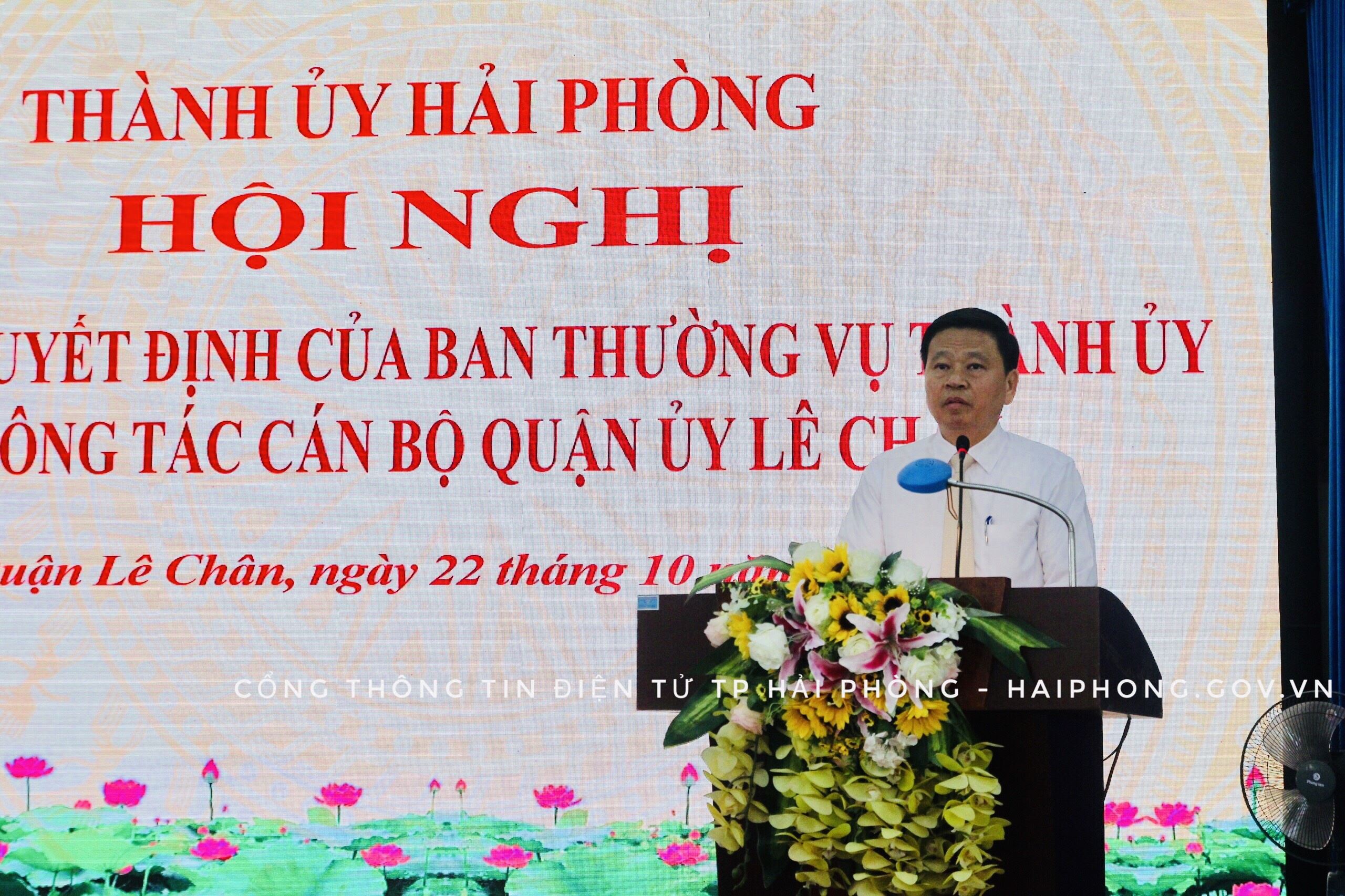 (Haiphong.gov.vn) - Sáng 22/10, Thường trực Thành ủy triệu tập Hội nghị công bố quyết định của Ban Thường vụ Thành ủy về công tác cán bộ của Quận uỷ Lê Chân. Đồng chí Phạm Văn Hà, Ủy viên Ban Thường vụ Thành ủy, Trưởng Ban Tổ chức Thành ủy chủ trì Hội nghị.
