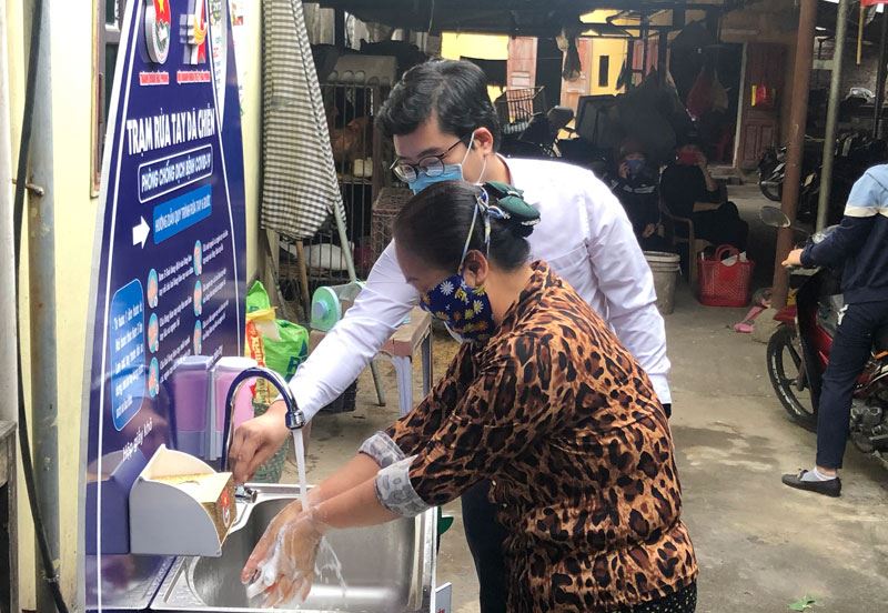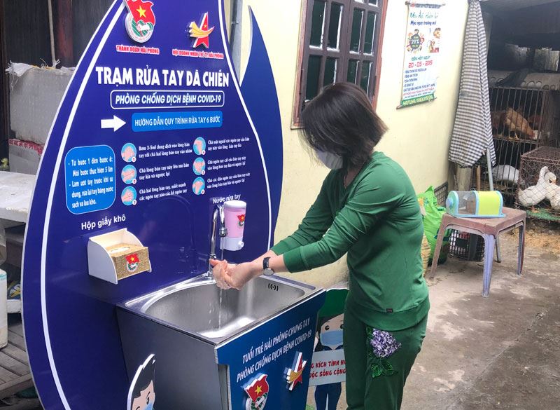Mô hình trạm rửa tay dã chiến phòng, chống dịch bệnh COVID-19 được thực hiện với sự phối hợp giữa Thành đoàn Hải Phòng - Hội LHTN Việt Nam thành phố và Hội Doanh nhân trẻ thành phố, được lắp đặt tại các chợ dân sinh, chợ đầu mối nơi tập trung đông tiểu thương và bà con nhân dân nhằm phục vụ trực tiếp nhu cầu hằng ngày của người dân và các hộ kinh doanh, qua đó góp phần giảm thiểu nguy cơ lây nhiễm dịch bệnh COVID-19. Tại trạm rửa tay dã chiến, có hướng dẫn quy trình rửa tay 6 bước theo khuyến cáo của ngành y tế để người dân thực hiện đúng cách; có trang bị nước rửa tay, hộp giấy khô và bố trí thùng rác.