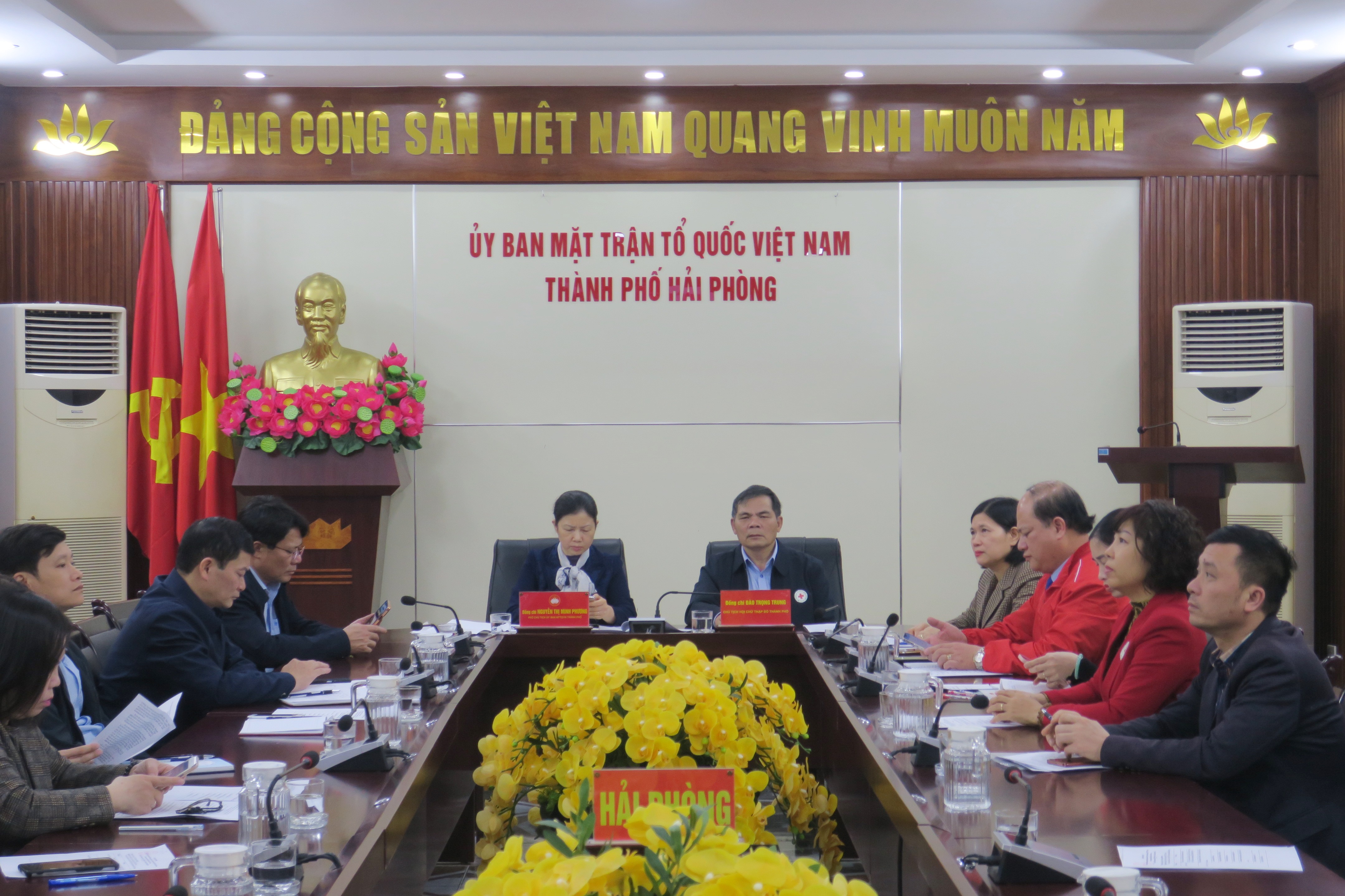 Tại điểm cầu thành phố Hải Phòng, các đồng chí: Nguyễn Thị Minh Phương, Phó Chủ tịch UBMT Tổ quốc Việt Nam thành phố; Đào Trọng Trung, Chủ tịch Hội Chữ thập đỏ thành phố; cùng đại diện các cơ quan, đơn vị liên quan tham dự Hội nghị.