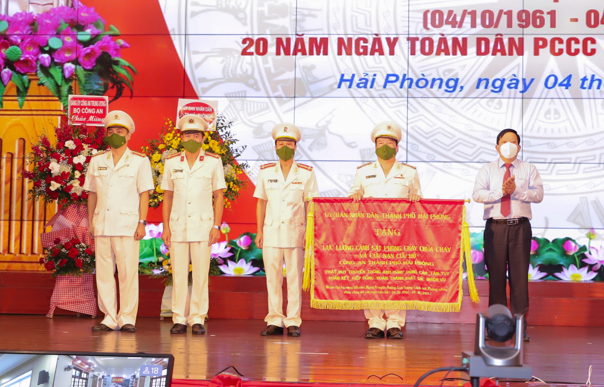 UBND thành phố đã trao tặng cho lực lượng Cảnh sát PCCC và CHCN Công an thành phố Hải Phòng Bức trướng với nội dung: “Phát huy truyền thống anh hùng, dũng cảm, tận tụy, đoàn kết, hiệp đồng, hoàn thành xuất sắc nhiệm vụ”.