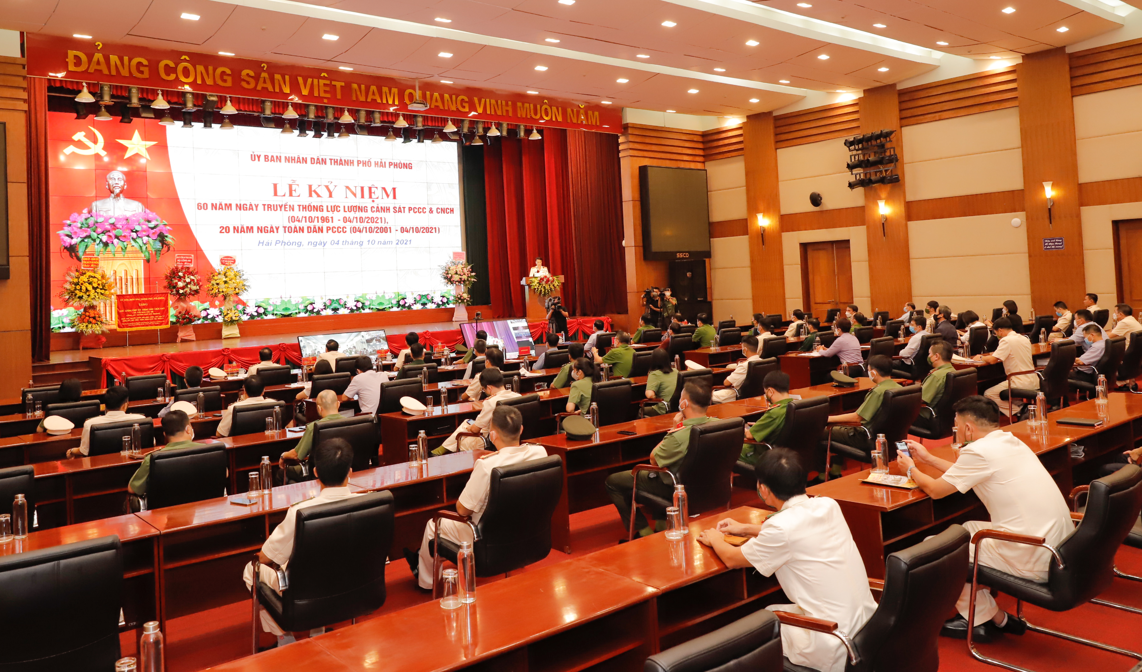 (Haiphong.gov.vn) - Sáng 4/10, UBND thành phố tổ chức Lễ Kỷ niệm (trực tuyến) 60 năm Ngày truyền thống lực lượng Cảnh sát Phòng cháy chữa cháy và Cứu hộ cứu nạn (4/10/1961 - 4/10/2021) và 20 năm Ngày toàn dân Phòng cháy chữa cháy (4/10/2001 - 4/10/2021).