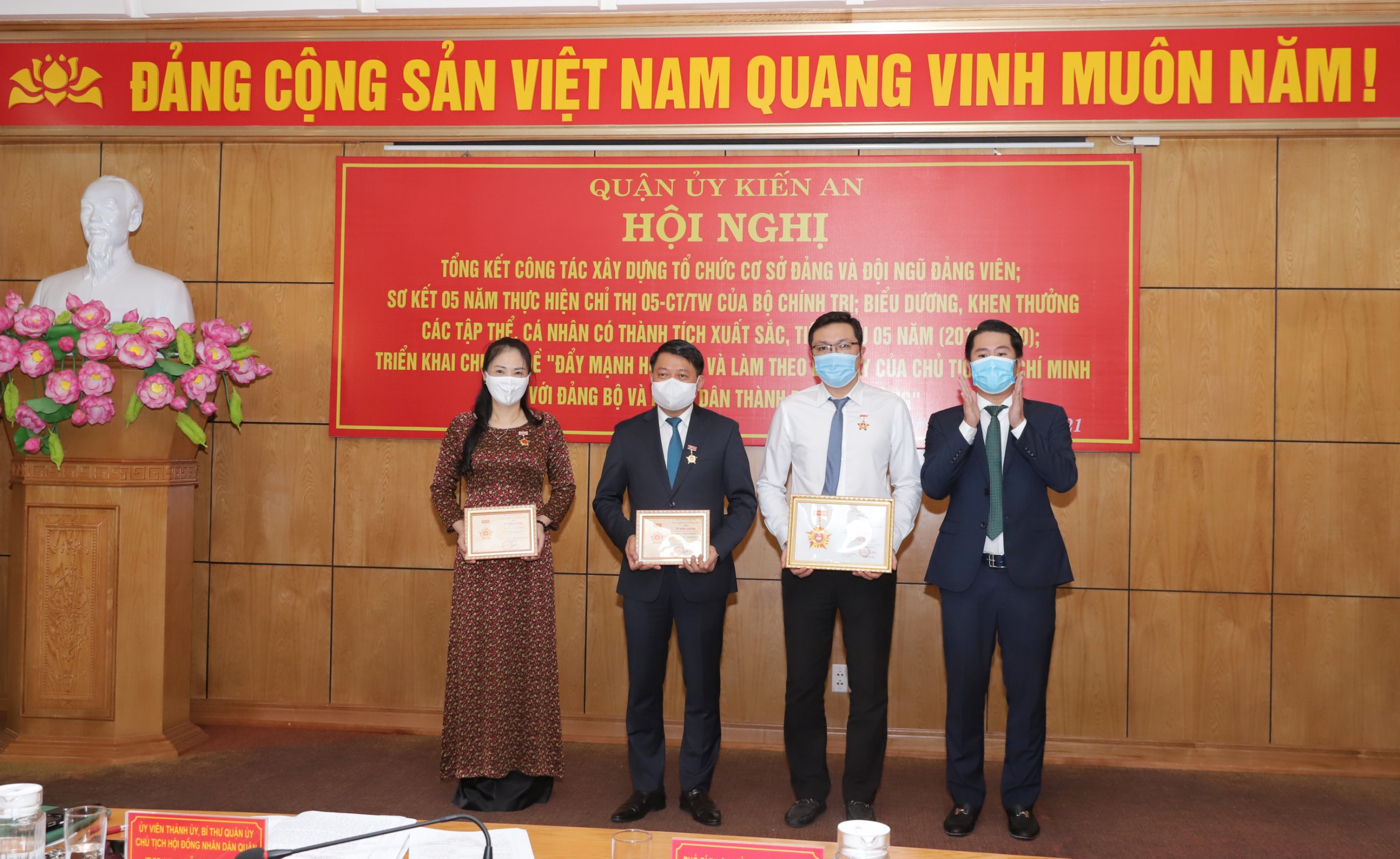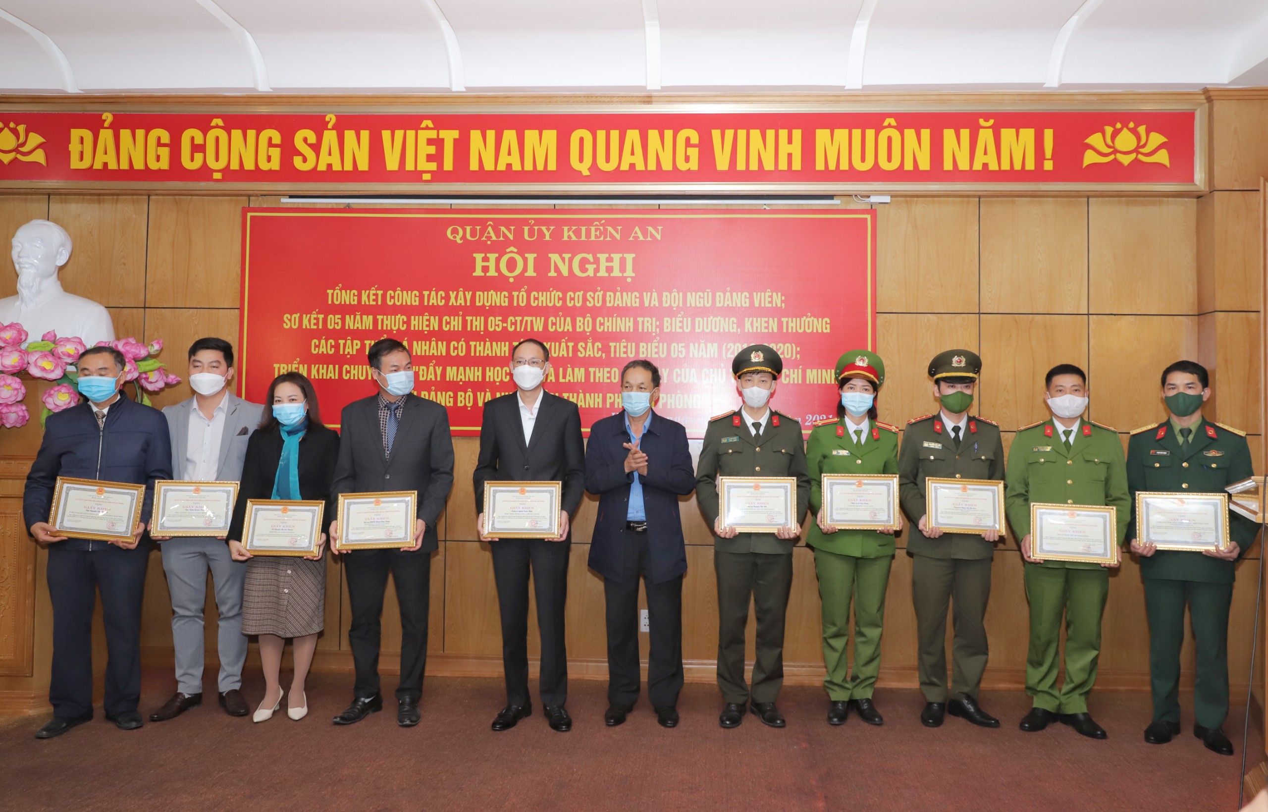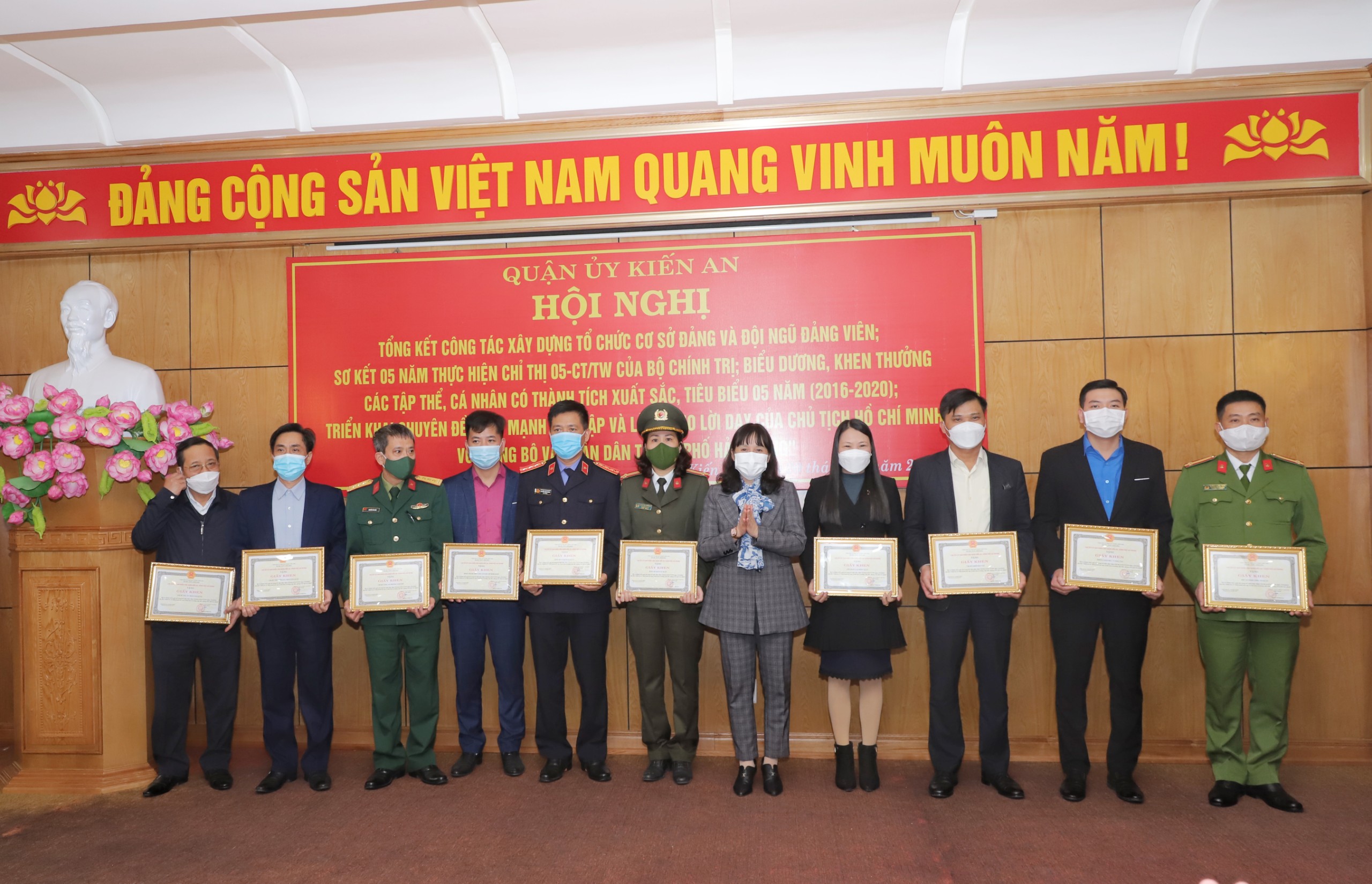 Nhân dịp này, 04 cá nhân được tặng kỷ niệm chương “Vì sự nghiệp công tác tổ chức xây dựng Đảng”; 02 tập thể và 02 cá nhân có thành tích xuất sắc trong học tập làm theo tư tưởng, đạo đức, phong cách Hồ Chí Minh được nhận Bằng khen của Chủ tịch UBND thành phố; 03 tổ chức Đảng và 10 đảng viên được nhận Giấy khen của Quận ủy quận Kiến An; 24 tập thể và 18 cá nhân được nhận Giấy khen của Chủ tịch UBND quận Kiến An.