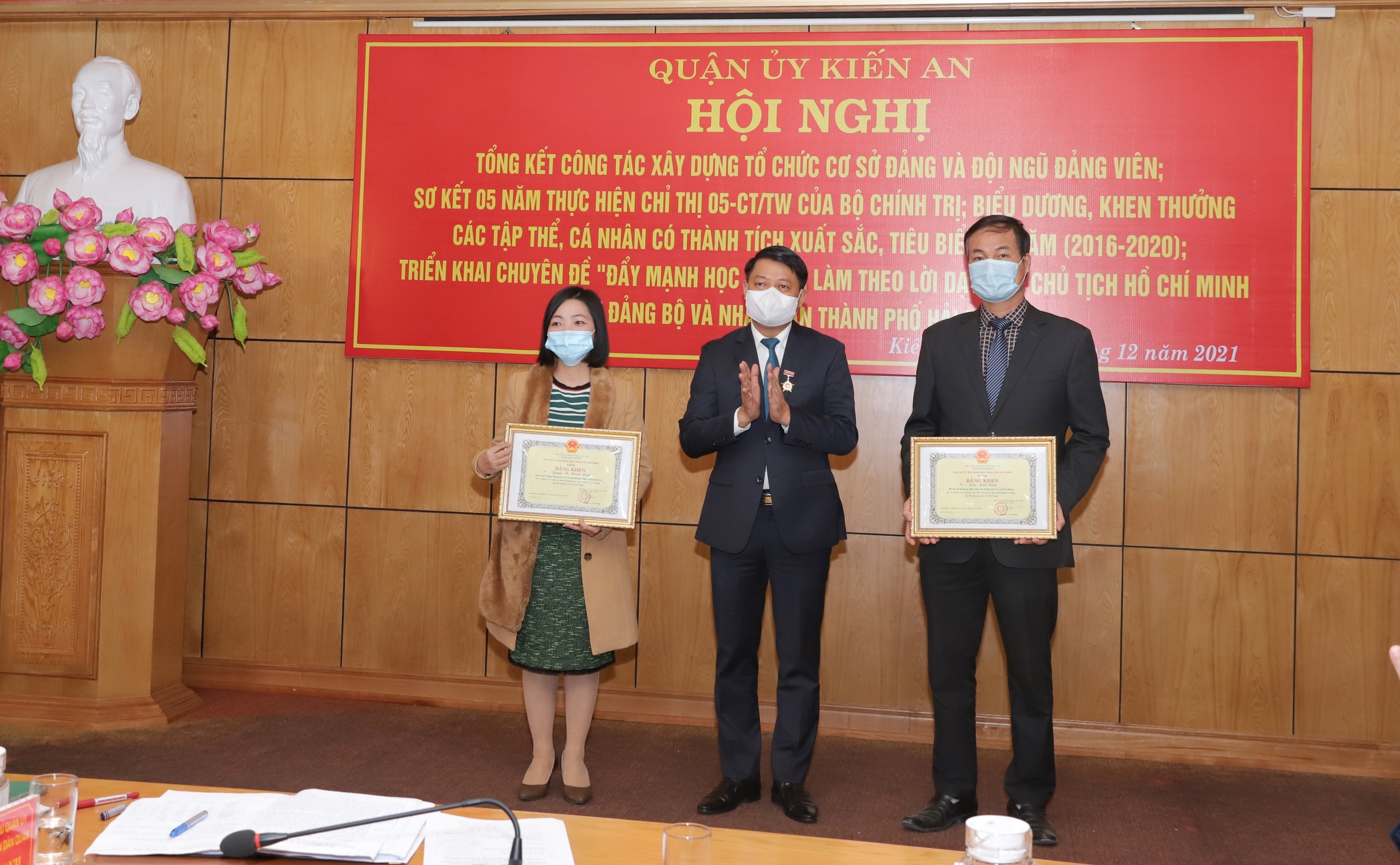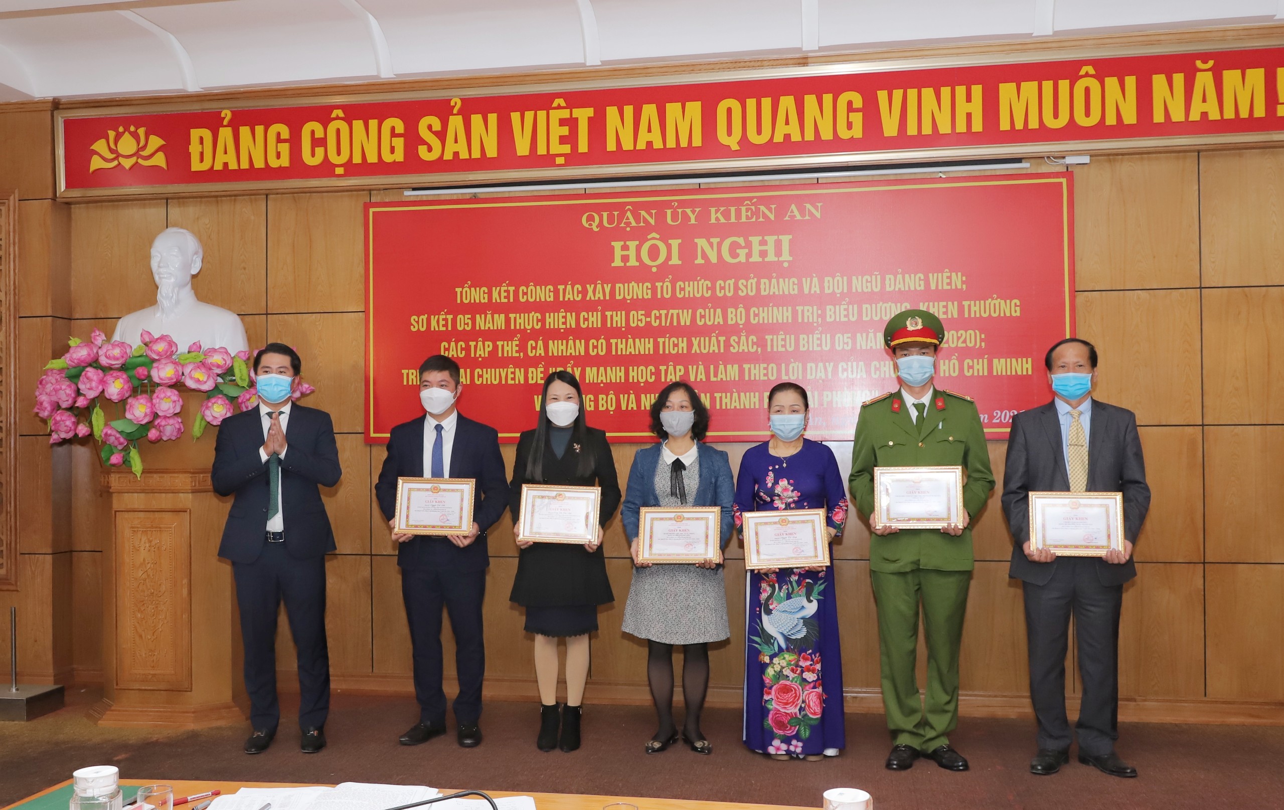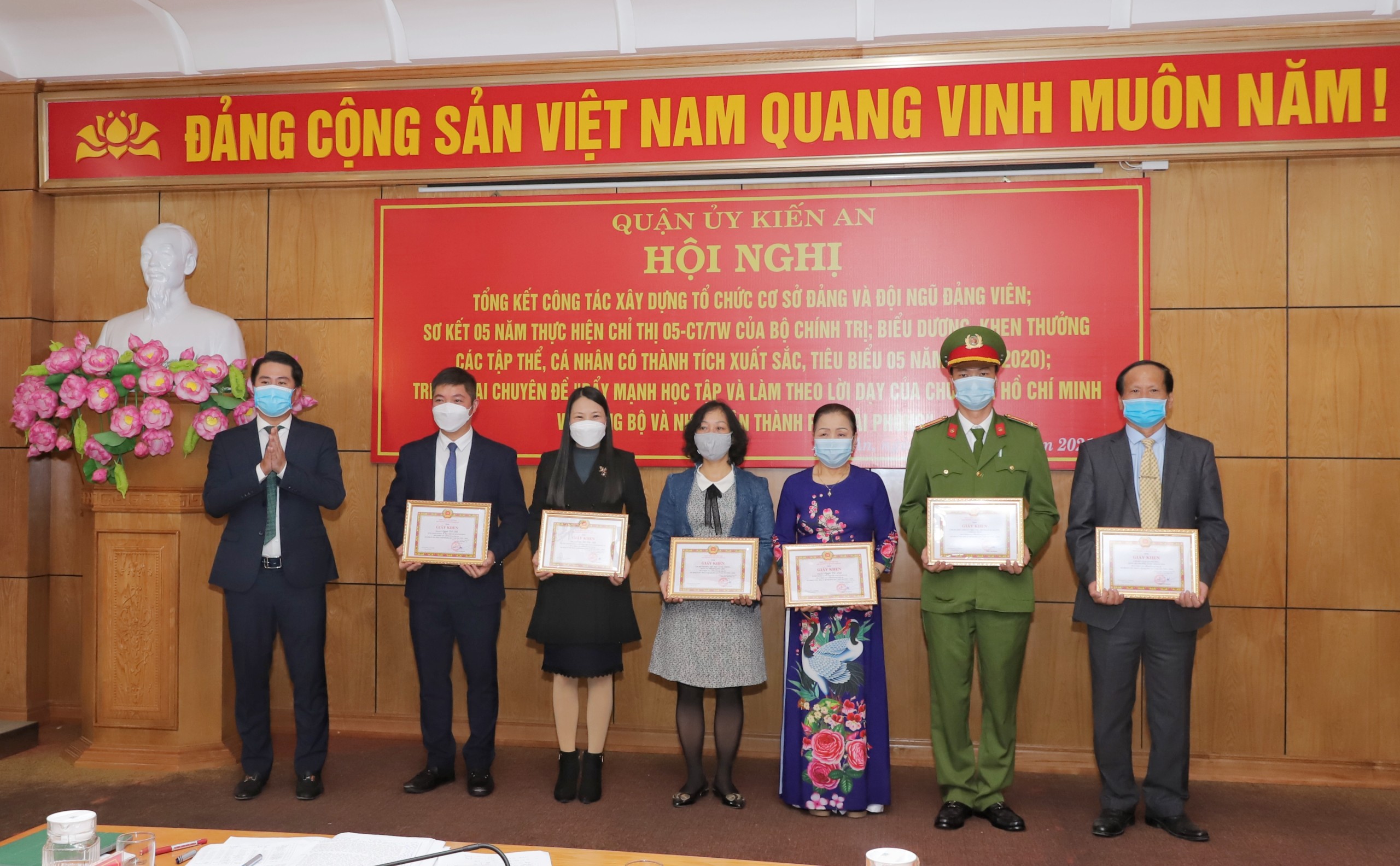 Nhân dịp này, 04 cá nhân được tặng kỷ niệm chương “Vì sự nghiệp công tác tổ chức xây dựng Đảng”; 02 tập thể và 02 cá nhân có thành tích xuất sắc trong học tập làm theo tư tưởng, đạo đức, phong cách Hồ Chí Minh được nhận Bằng khen của Chủ tịch UBND thành phố; 03 tổ chức Đảng và 10 đảng viên được nhận Giấy khen của Quận ủy quận Kiến An; 24 tập thể và 18 cá nhân được nhận Giấy khen của Chủ tịch UBND quận Kiến An.