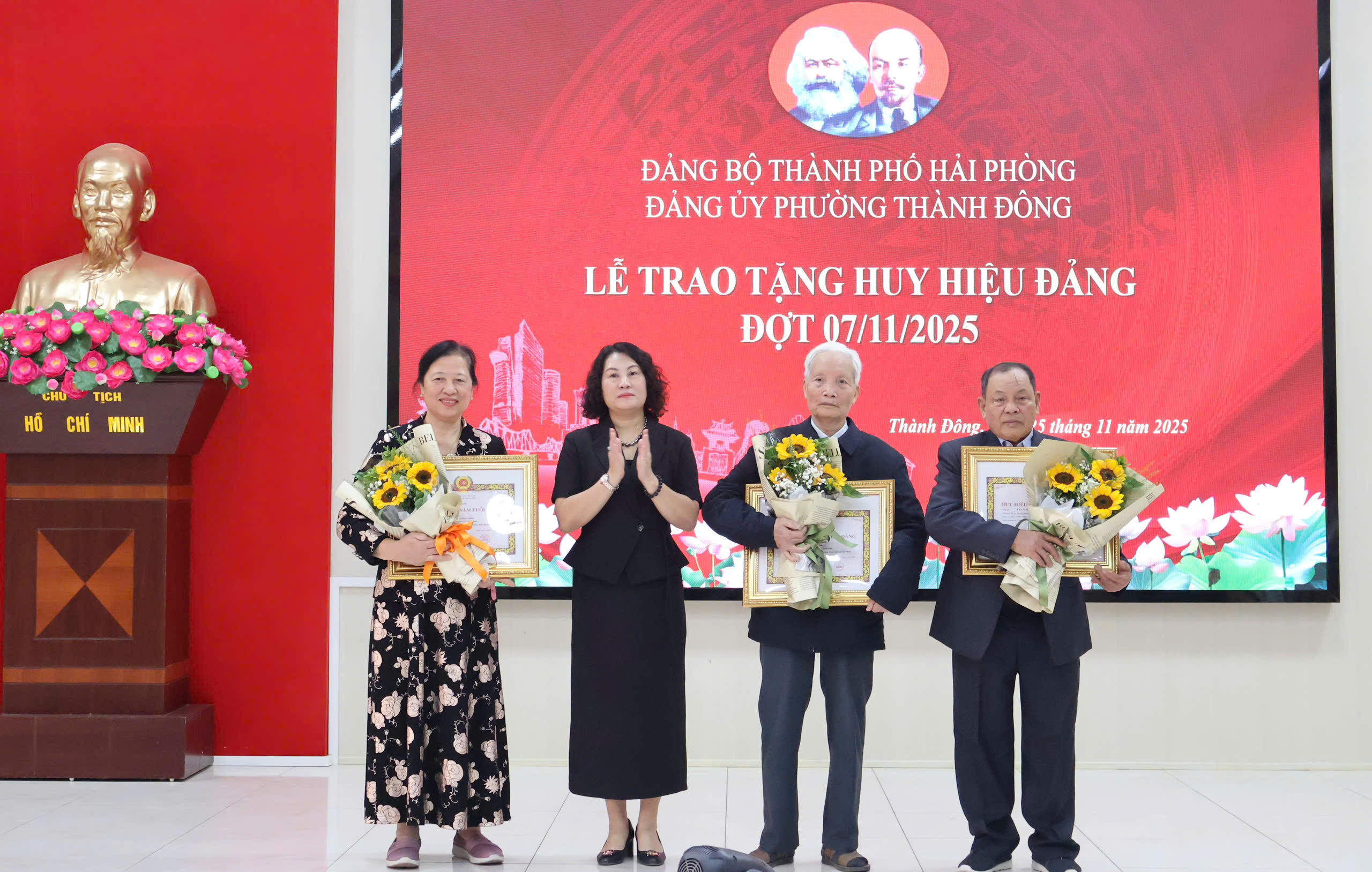 Đồng chí Ngô Thị Thanh Hòa, Thành ủy viên, Bí thư Đảng ủy, Chủ tịch HĐND phường Thành Đông trao huy hiệu Đảng cho đảng viênNhân dịp này, Đảng ủy phường Thành Đông tổ chức lễ trao huy hiệu Đảng cho các đảng viên đủ điều kiện theo quyết định của Thành ủy đợt 07/11/2025. Trong số 2.956 đảng viên toàn thành phố được trao huy hiệu Đảng đợt này, phường Thành Đông có 55 đảng viên, trong đó có 2 đảng viên nhận huy hiệu 65 năm tuổi Đảng, 4 đảng viên nhận huy hiệu 60 năm tuổi Đảng, 4 đảng viên nhận huy hiệu 55 năm tuổi Đảng, 3 đảng viên nhận huy hiệu 50 năm tuổi Đảng, 20 đảng viên nhận huy hiệu 45 năm tuổi Đảng, 14 đảng viên nhận huy hiệu 40 năm tuổi Đảng, 9 đảng viên nhận huy hiệu 30 năm tuổi Đảng.