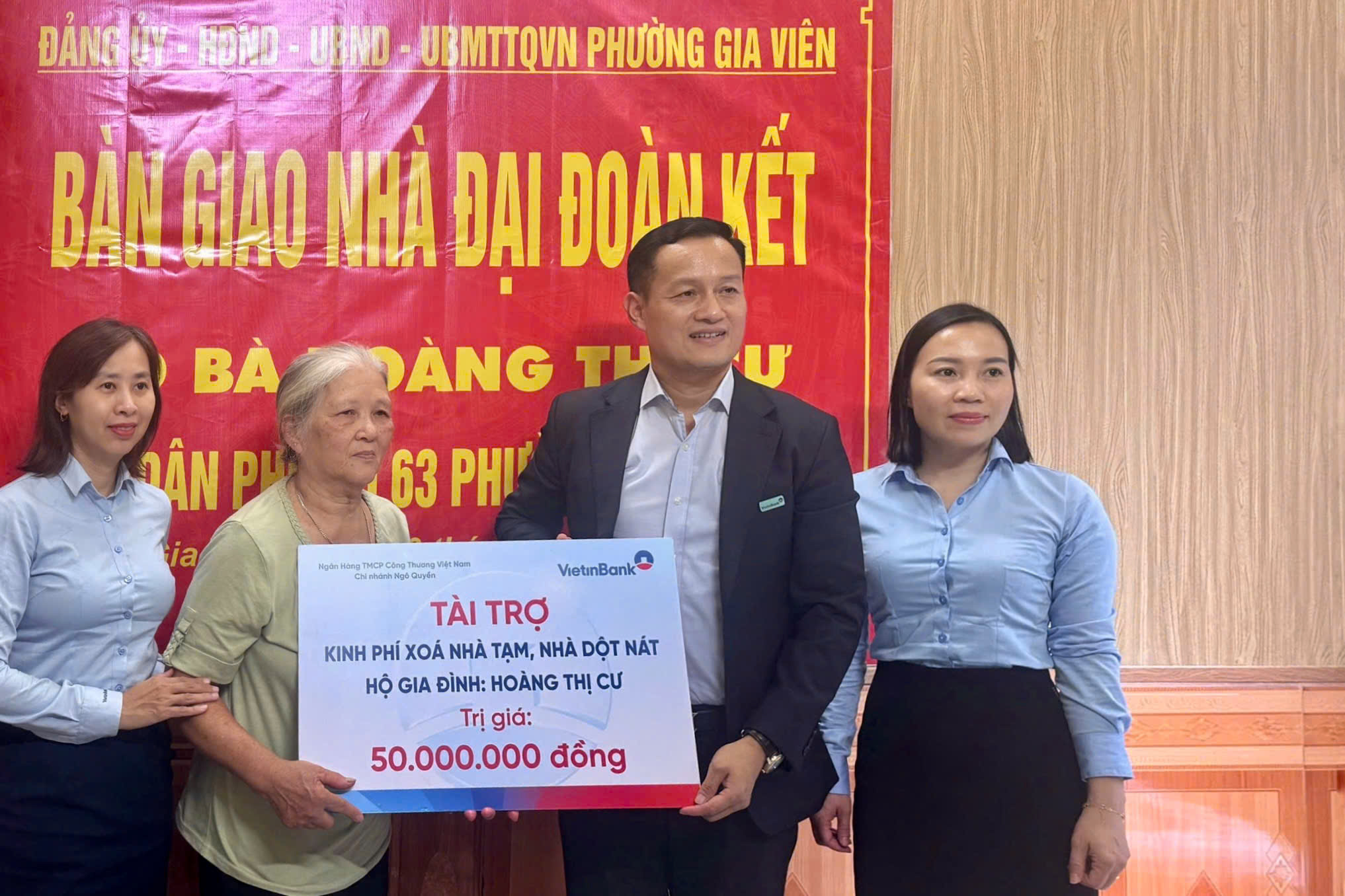 Ngân hàng TMCP Công thương Việt Nam – Chi nhánh Ngô Quyền hỗ trợ 50 triệu đồng.Gia đình bà Cư có hoàn cảnh đặc biệt khó khăn, gồm hai mẹ con. Bà tuổi cao, sức yếu, không có lương hưu, thu nhập chủ yếu từ việc làm thuê; con trai là lao động tự do, thu nhập bấp bênh. Chồng bà mất năm 2024 sau thời gian dài điều trị bệnh hiểm nghèo, kinh tế gia đình càng thêm túng thiếu.