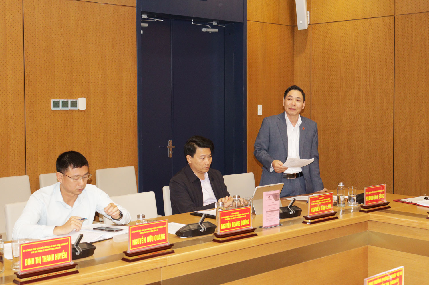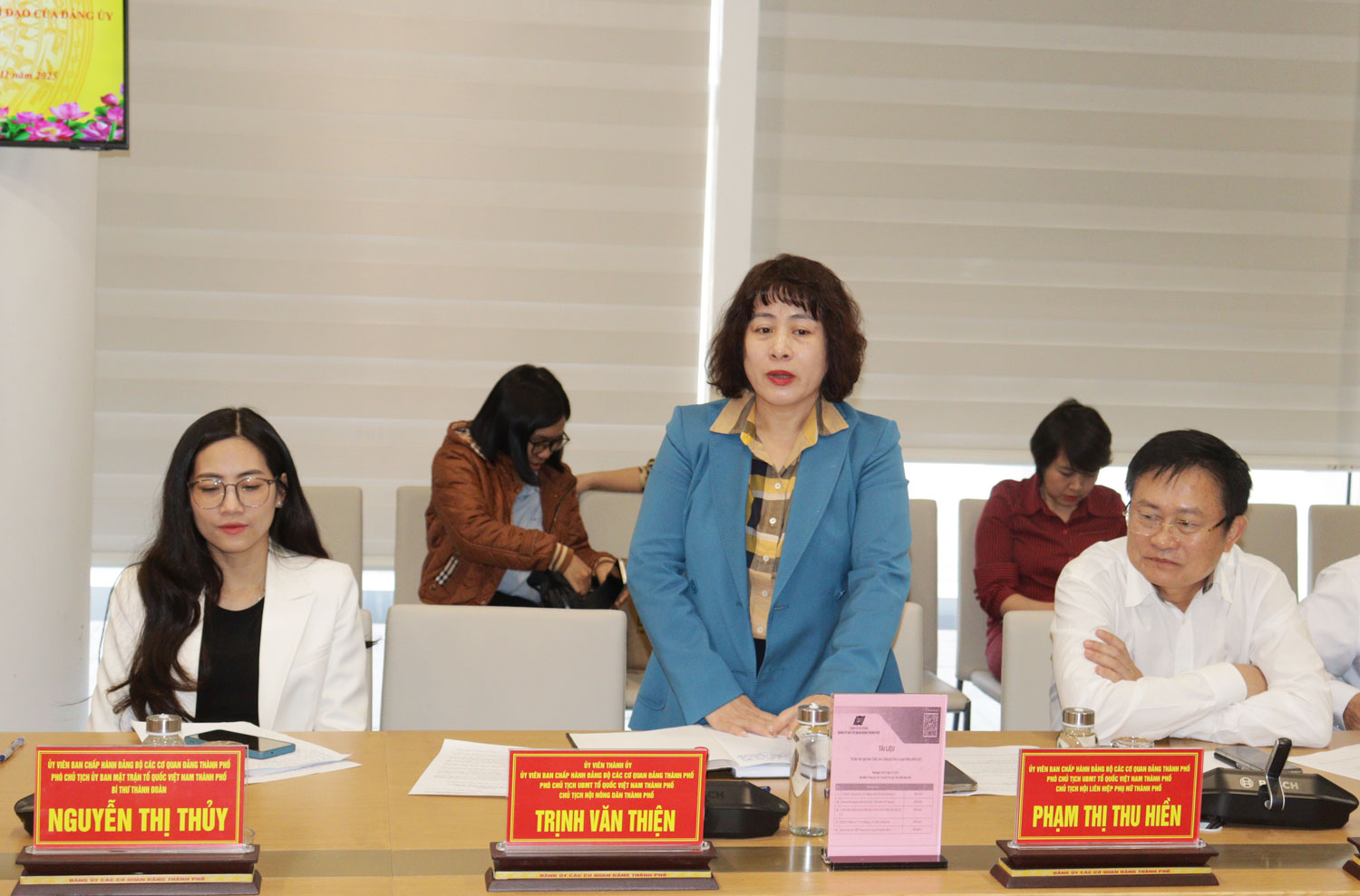 Đồng chí Phạm Thị Thu Hiến, Chủ tịch Hội LHPN thành phố phát biểu tại Hội nghị.Các đồng chí Ủy viên Ban Thường vụ Đảng ủy Các cơ quan Đảng thành phố cơ bản thống nhất với các Tờ trình về các nội dung được trình tại Hội nghị.