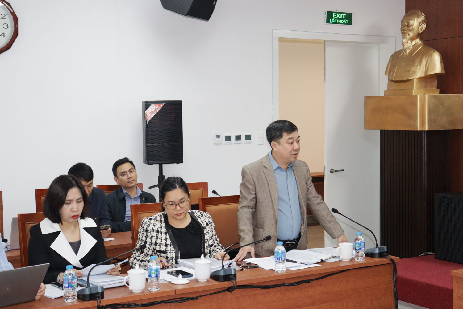 Lãnh đạo Sở Giáo dục và Đào tạo báo cáo tại cuộc họp.Tại cuộc họp, Ban Văn hóa - Xã hội HĐND thành phố đã thẩm tra các hồ sơ dự thảo Nghị quyết do Sở Giáo dục và Đào tạo chủ trì tham mưu về: Quy định cơ chế, chính sách trong phát hiện, đào tạo, bồi dưỡng học sinh giỏi, tuyển chọn, sử dụng, đãi ngộ đội ngũ cán bộ quản lý, giáo viên trong lĩnh vực đào tạo bồi dưỡng học sinh giỏi quốc gia, khu vực, quốc tế thành phố Hải Phòng. Quy định danh mục các khoản thu, mức thu, cơ chế quản lý thu, chi đối với các danh mục hỗ trợ hoạt động giáo dục mầm non, giáo dục phổ thông công lập trên địa bàn thành phố từ năm học 2025 - 2026.