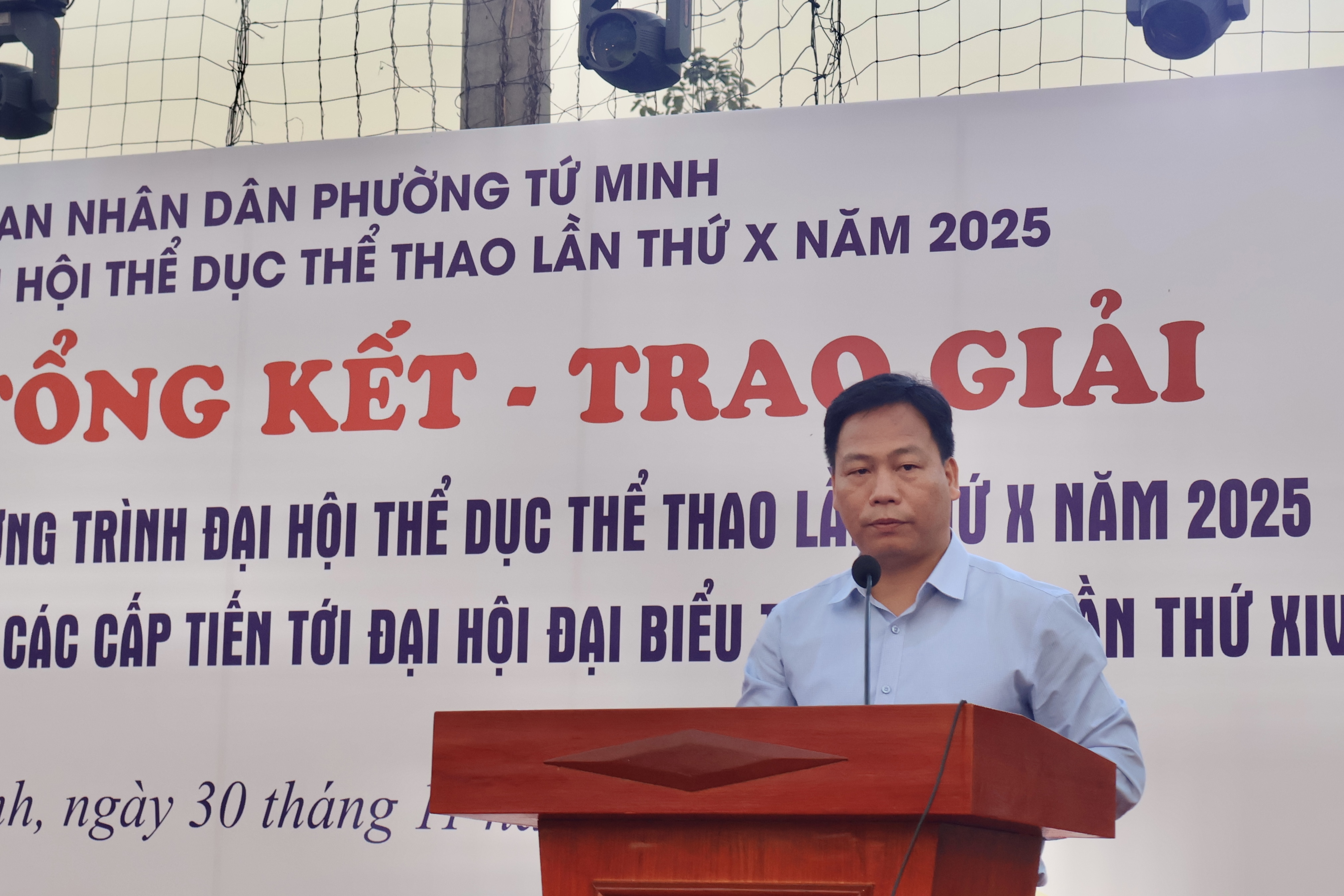 Phó Bí thư Đảng ủy, Chủ tịch UBND phường Tứ Minh Lê Văn Trung phát biểu tại lễ bế mạc Đại hộiPhát biểu tại Lễ Bế mạc Đại hội, Phó Bí thư Đảng ủy, Chủ tịch UBND phường Tứ Minh Lê Văn Trung nhấn mạnh, Đại hội TTDTT phường Tứ Minh lần thứ X, năm 2025 là sự kiện quan trọng đánh dấu bước tiến mới trong phong trào thể dục thể thao của phường, đặc biệt trong bối cảnh Tứ Minh đang triển khai mô hình tổ chức chính quyền địa phương hai cấp, hướng tới quản trị hiệu quả, hiện đại và phục vụ Nhân dân ngày càng tốt hơn. Thành công của Đại hội là cơ sở quan trọng để phường Tứ Minh tiếp tục xây dựng cộng đồng khỏe về thể chất, mạnh về tinh thần, giàu đẹp về văn hóa – đúng với mục tiêu “Tứ Minh đổi mới – phát triển – văn minh – hiện đại”.
