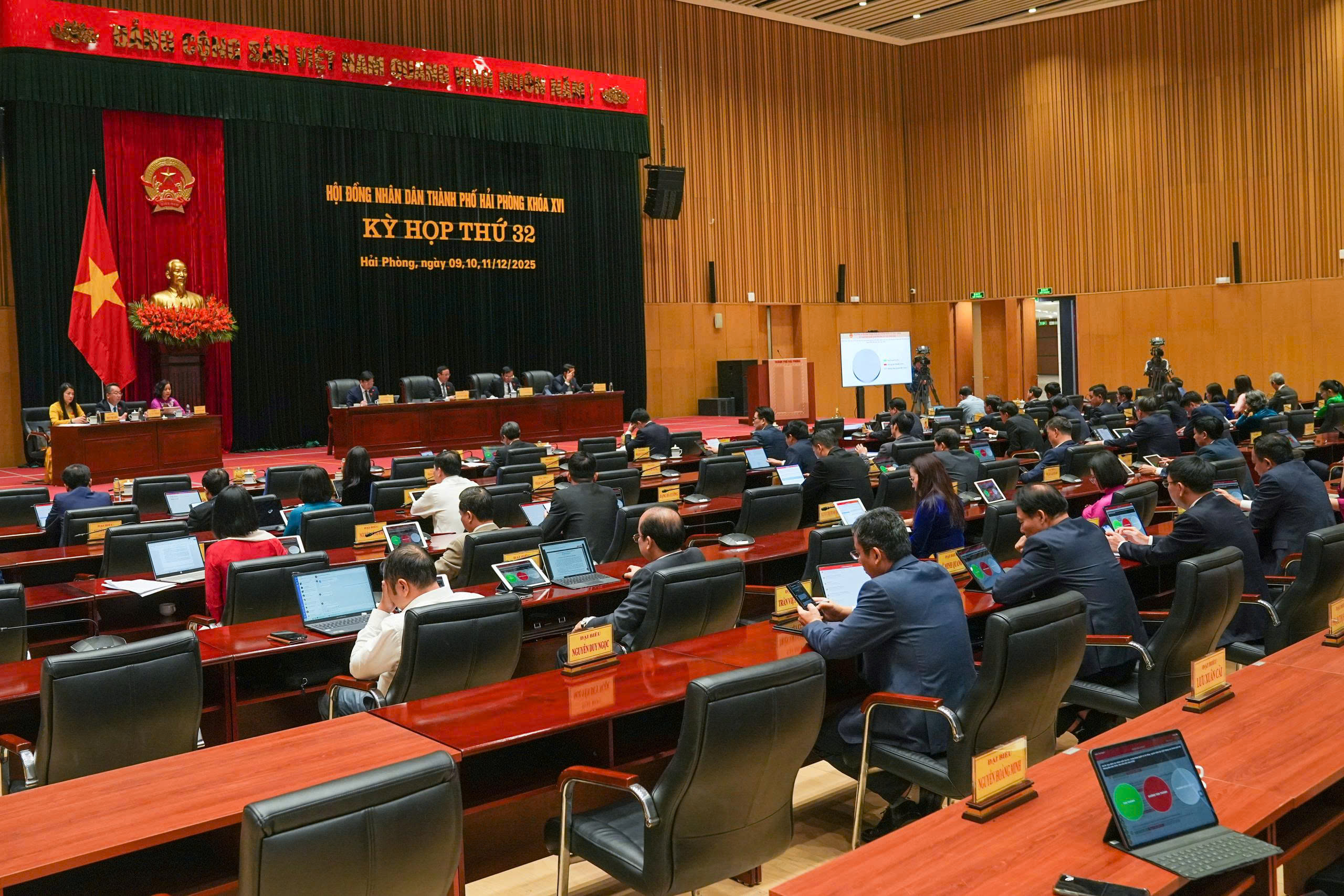 (Haiphong.gov.vn) - Sau 2,5 ngày làm việc tích cực, khẩn trương, với tinh thần trách nhiệm cao trước Đảng bộ, chính quyền và Nhân dân, Kỳ họp thứ 32 (Kỳ họp thường lệ cuối năm 2025) HĐND thành phố khóa XVI, nhiệm kỳ 2021 - 2026 đã hoàn thành toàn bộ chương trình đề ra.