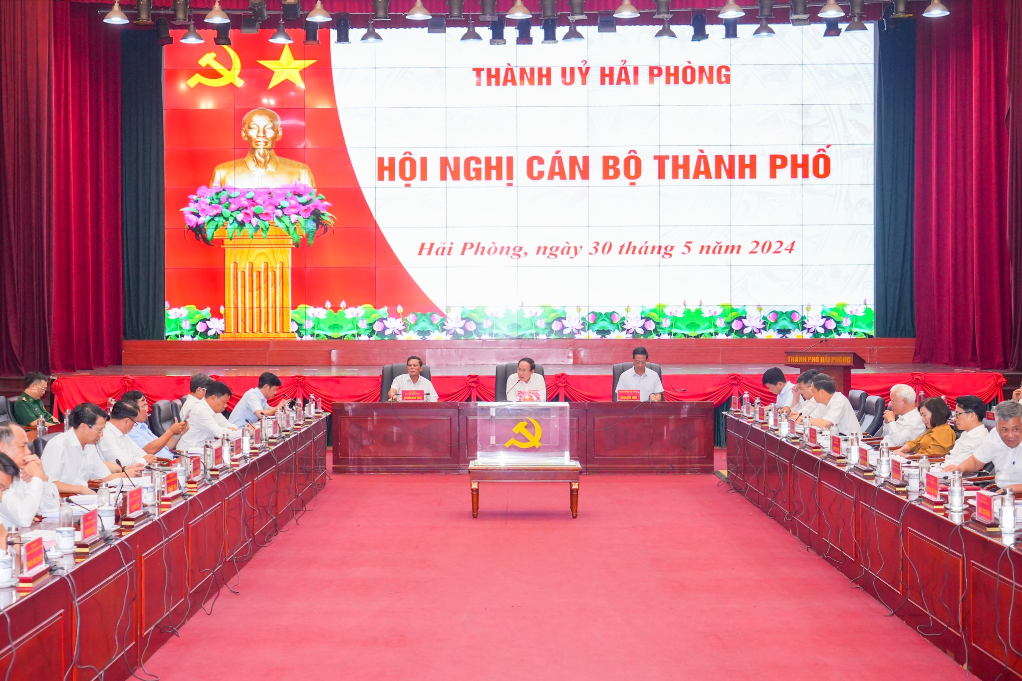 (Haiphong.gov.vn) - Chiều 30/5, đồng chí Lê Tiến Châu, Uỷ viên Trung ương Đảng, Bí Thư Thành ủy, Trưởng Đoàn ĐBQH Hải Phòng chủ trì Hội nghị Thông báo nhanh kết quả Hội nghị Trung ương 9, khoá XIII.