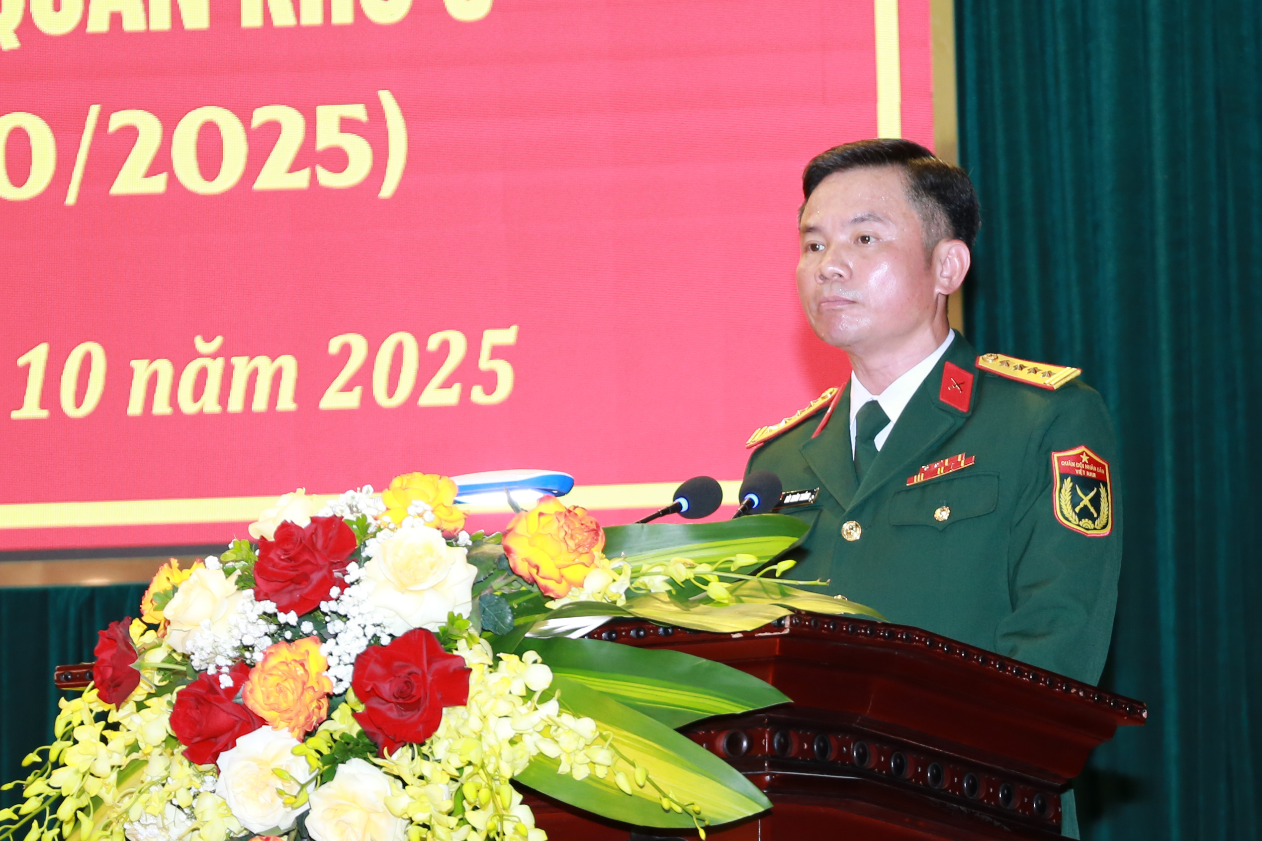 Đại tá Bùi Xuân Thắng, Chỉ huy trưởng Bộ CHQS thành phố phát biểu tại buổi gặp mặt