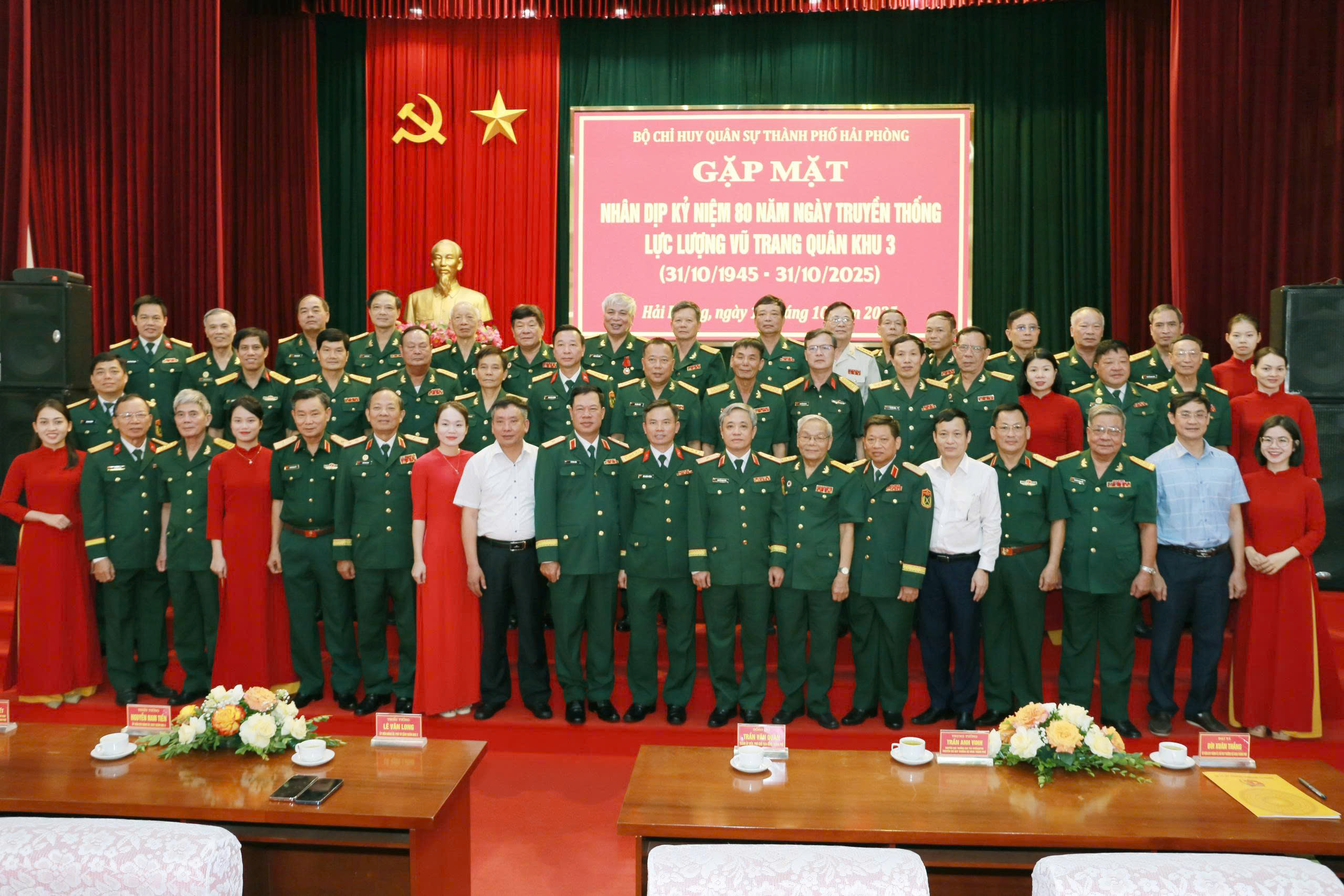 (Haiphong.gov.vn) – Sáng 16/10, Bộ Chỉ huy Quân sự (CHQS) thành phố Hải Phòng tổ chức buổi gặp mặt các đồng chí nguyên là Đảng ủy viên Đảng ủy Quân sự thành phố, nguyên chỉ huy Bộ CHQS qua các thời kỳ và đại diện lãnh đạo Hội Cựu chiến binh thành phố, nhân dịp kỷ niệm 80 năm Ngày truyền thống Lực lượng vũ trang (LLVT) Quân khu 3 (31/10/1945 - 31/10/2025).