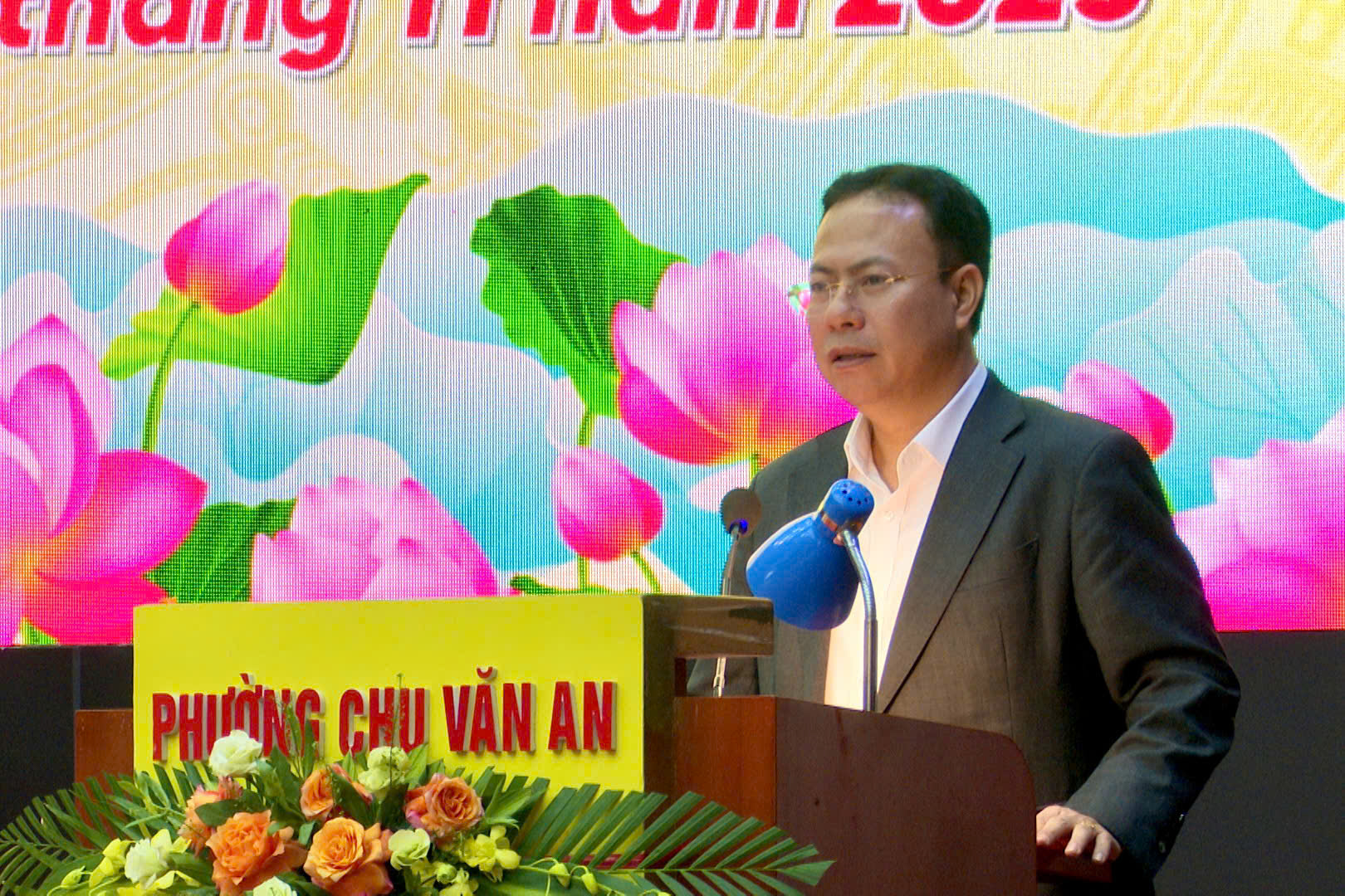 Đồng chí Hoàng Văn Thưởng, Ủy viên Ban Thường vụ Thành ủy, Phó Bí thư Thường trực Đảng ủy các cơ quan Đảng thành phố tiếp xúc cử tri tại phường Chu Văn AnĐánh giá cao kết quả phát triển kinh tế - xã hội thành phố đã đạt được