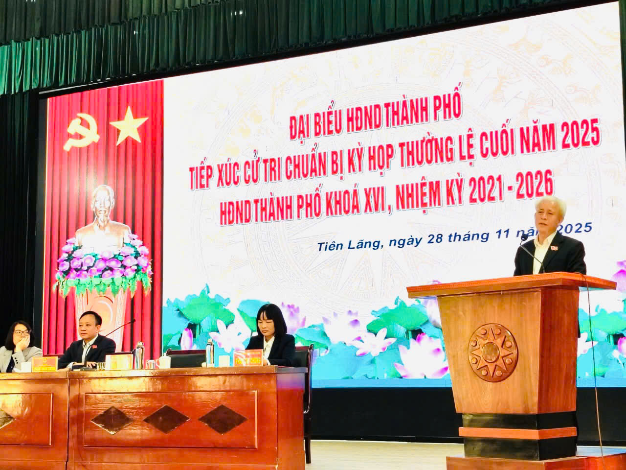 (Haiphong.gov.vn) – Để chuẩn bị cho Kỳ họp thường lệ cuối năm 2025 của HĐND thành phố khóa XVI, nhiệm kỳ 2021 – 2026, ngày 28/11, các đồng lãnh đạo và đại biểu HĐND thành phố đã tổ chức tiếp xúc cử tri tại các địa phương nơi ứng cử. Trong ngày, 16 Đoàn lãnh đạo và đại biểu HĐND đã gặp gỡ cử tri tại nhiều địa phương, lắng nghe ý kiến, nguyện vọng của Nhân dân và thông tin về hoạt động của HĐND cùng các nhiệm vụ trọng tâm sắp tới.