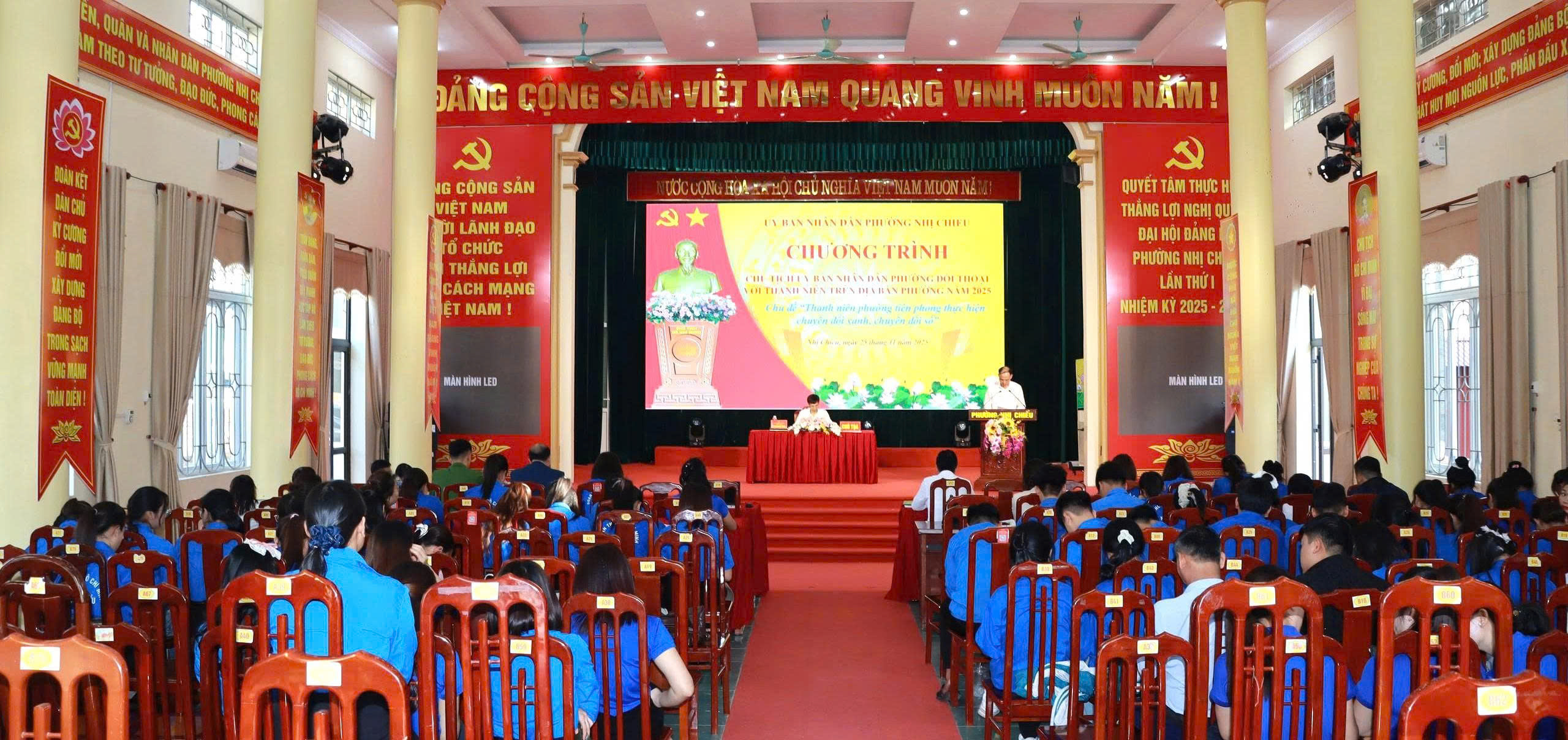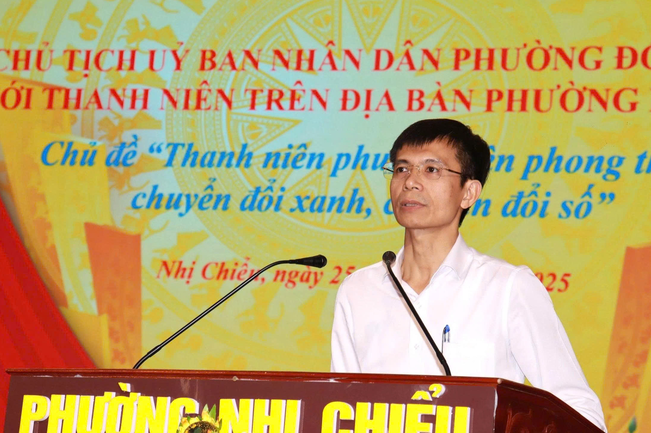 (Haiphong.gov.vn) - Chiều 25/11, đồng chí Lãnh Duy Tiến, Phó Bí thư Đảng uỷ, Chủ tịch UBND phường Nhị Chiểu chủ trì hội nghị đối thoại với thanh niên năm 2025 với chủ đề “Thanh niên phường tiên phong thực hiện chuyển đổi xanh, chuyển đổi số”. Tham dự hội nghị có các đồng chí trong Ban Thường vụ Đảng uỷ, Ban Chấp hành Đảng bộ phường, lãnh đạo các phòng, ban, ngành cùng 120 đoàn viên, thanh niên trên địa bàn.