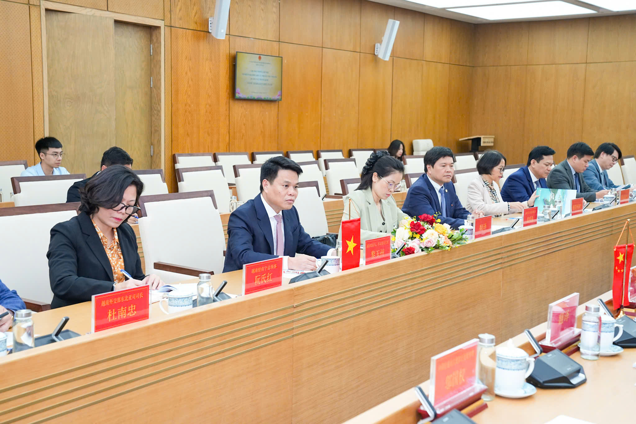 Lãnh đạo thành phố và Đoàn đại biểu Khu tự trị dân tộc Choang Quảng Tây, Trung Quốc.Cùng với đẩy mạnh thương mại song phương và kết nối logistics; thúc đẩy xây dựng tuyến đường sắt khổ tiêu chuẩn Móng Cái – Hạ Long - Hải Phòng; tăng cường kết nối, khai thác tuyến hàng hải giữa cảng Lạch Huyện và các cảng Bắc Hải, Phòng Thành, Khâm Châu để cùng phát triển các cụm cảng của 2 bên; khôi phục lại tuyến vận tải thẳng quốc tế Nam Ninh - Hải Phòng. Mở thêm các tuyến vận tải hàng hóa và hành khách đi đến giữa hai địa phương. Tăng cường hợp tác du lịch và giao lưu nhân dân; tăng cường và tận dụng tối đa đường bay Hải Phòng – Nam Ninh để thúc đẩy ngành du lịch hai địa phương phát triển; tăng cường công tác quảng bá du lịch, giới thiệu di sản, danh lam thắng cảnh hai địa phương; cơ quan quản lý du lịch hai bên phối hợp với các công ty lữ hành quốc tế xây dựng tuyến du lịch Hải Phòng – Nam Ninh; duy trì các hoạt động giao lưu văn hóa, giao lưu thanh niên…